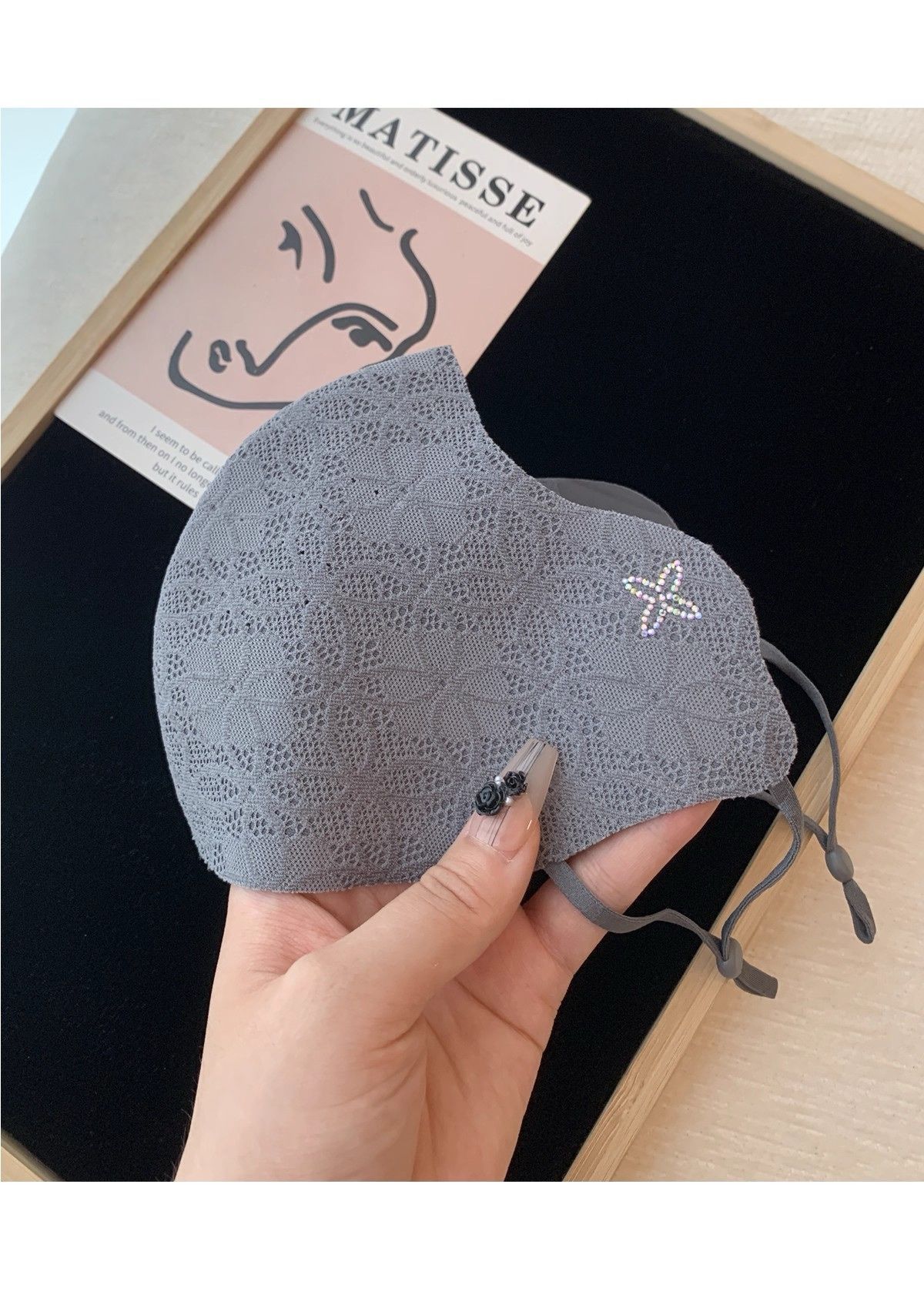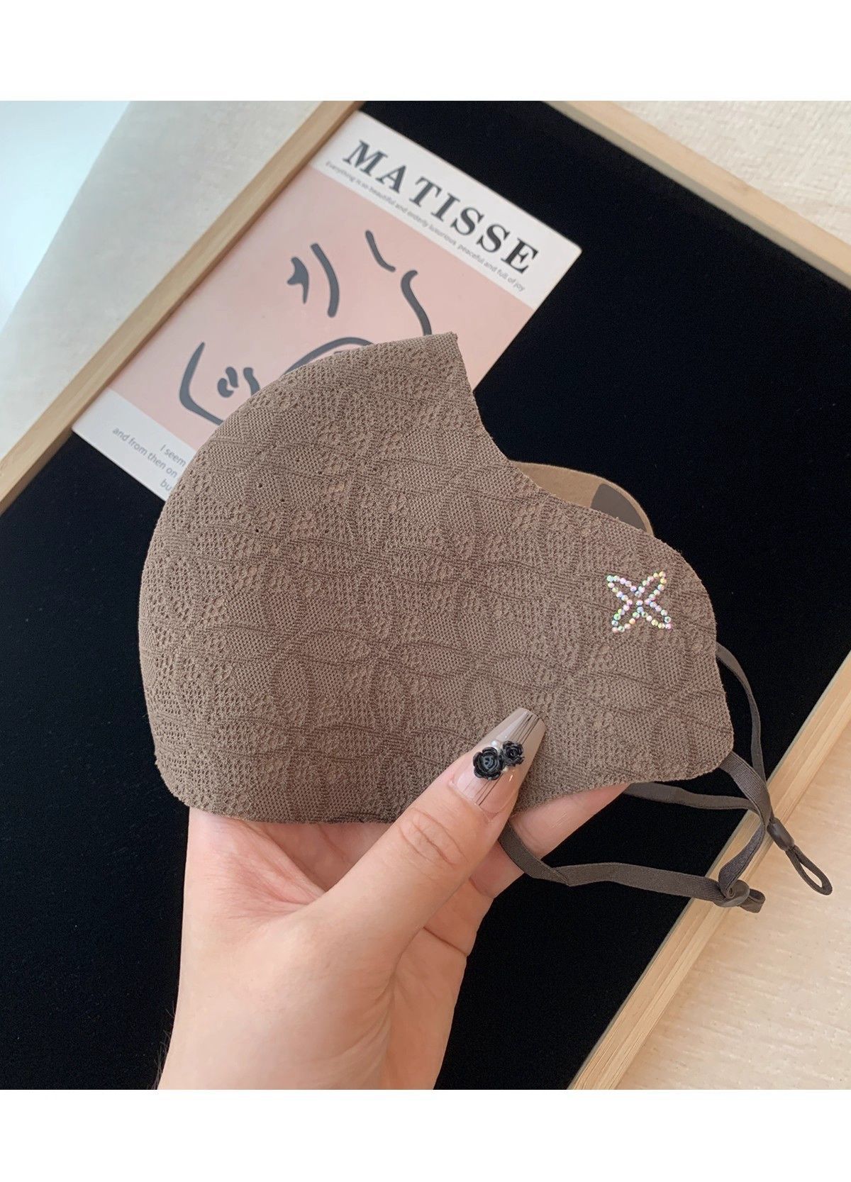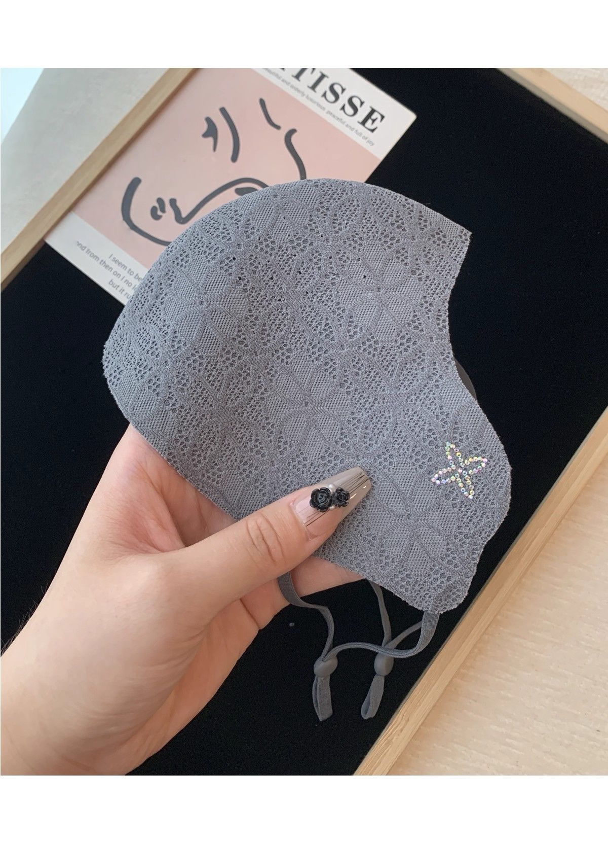 2025秋冬新款保暖口罩可调节高颜值优雅气质蕾丝带钻防风防寒面罩