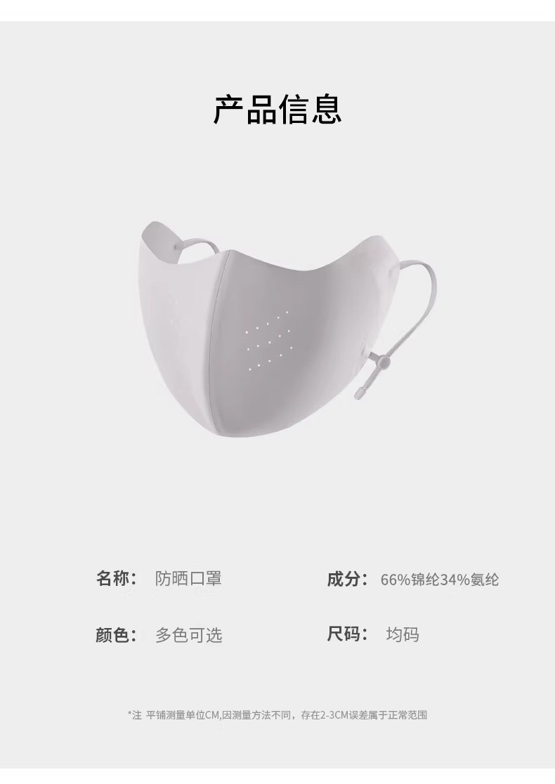 材质: 锦纶 口罩款式: 挂耳式 功能: 防紫外线UPF50+ 品牌: other 适用性别: 中性/男女均可 图案: 几何 加工方式: 印花 加印LOGO: 可以 适合季节: 夏季 适用送礼场合: 全部 加工定制: 否 货号: B26-10 产地: 浙江 颜色: 黑色,浅灰,粉色,深灰,米白 主要下游平台: 淘宝,京东,PDD,亚马逊,快手,SHE 是否跨境出口专供货源: 否 上市年份/季节: 2026年春季 风格: 时尚潮流 日常通勤 重量: 0.02 kg/盒