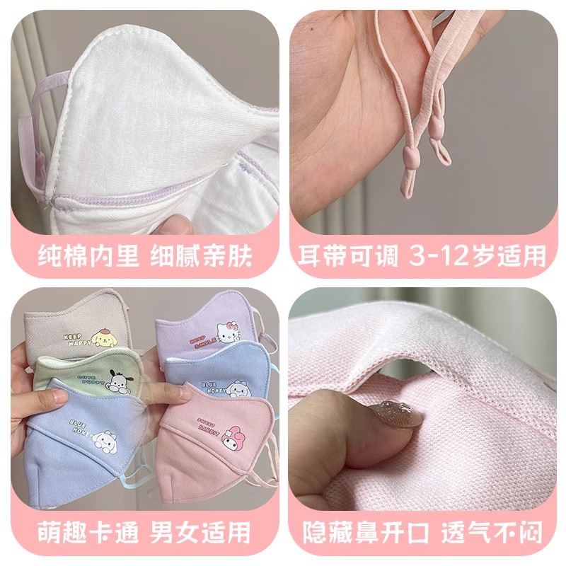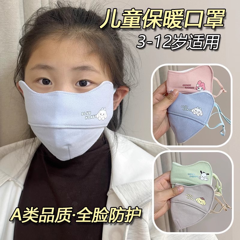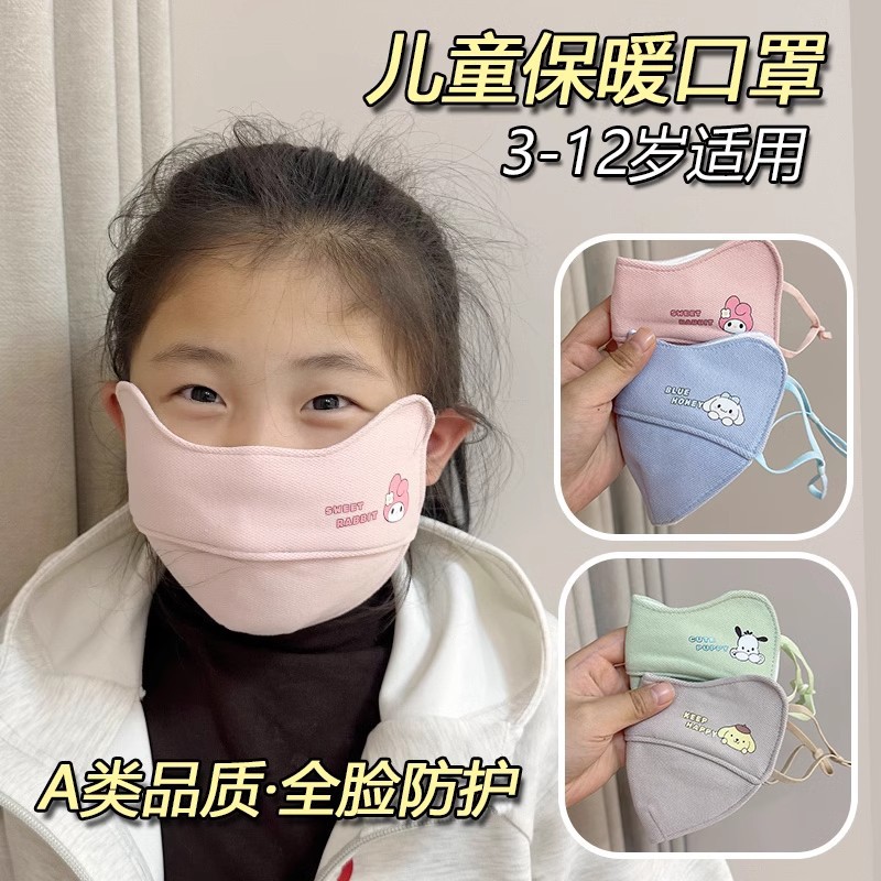 儿童保暖口罩秋冬季三丽鸥宝宝口罩纯棉可水洗防风防寒3到6到12岁