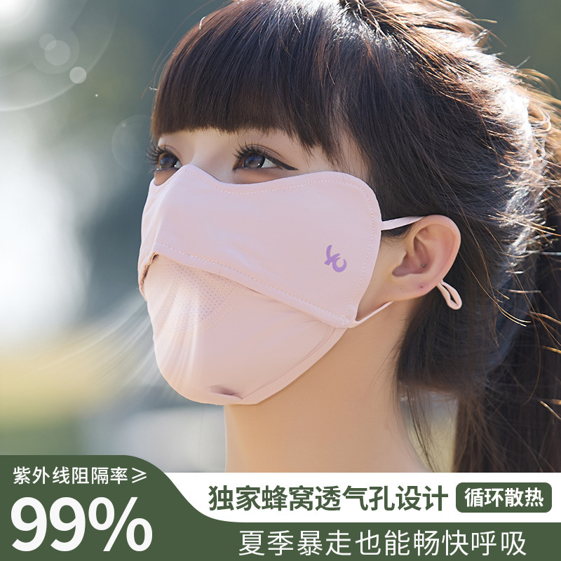 夏季冰丝防晒口罩女透气孔护眼角户外骑行旅游防紫外线面罩护脸女