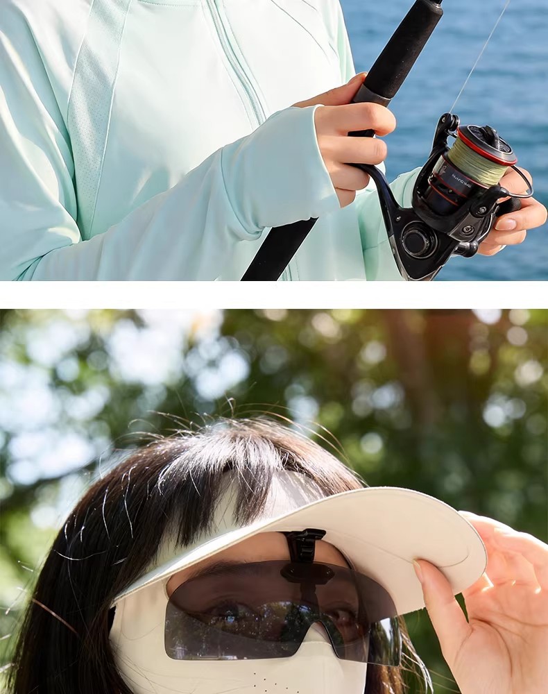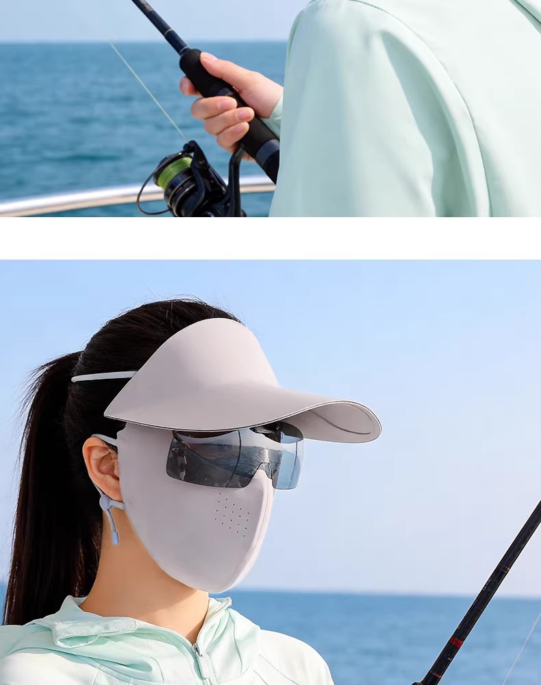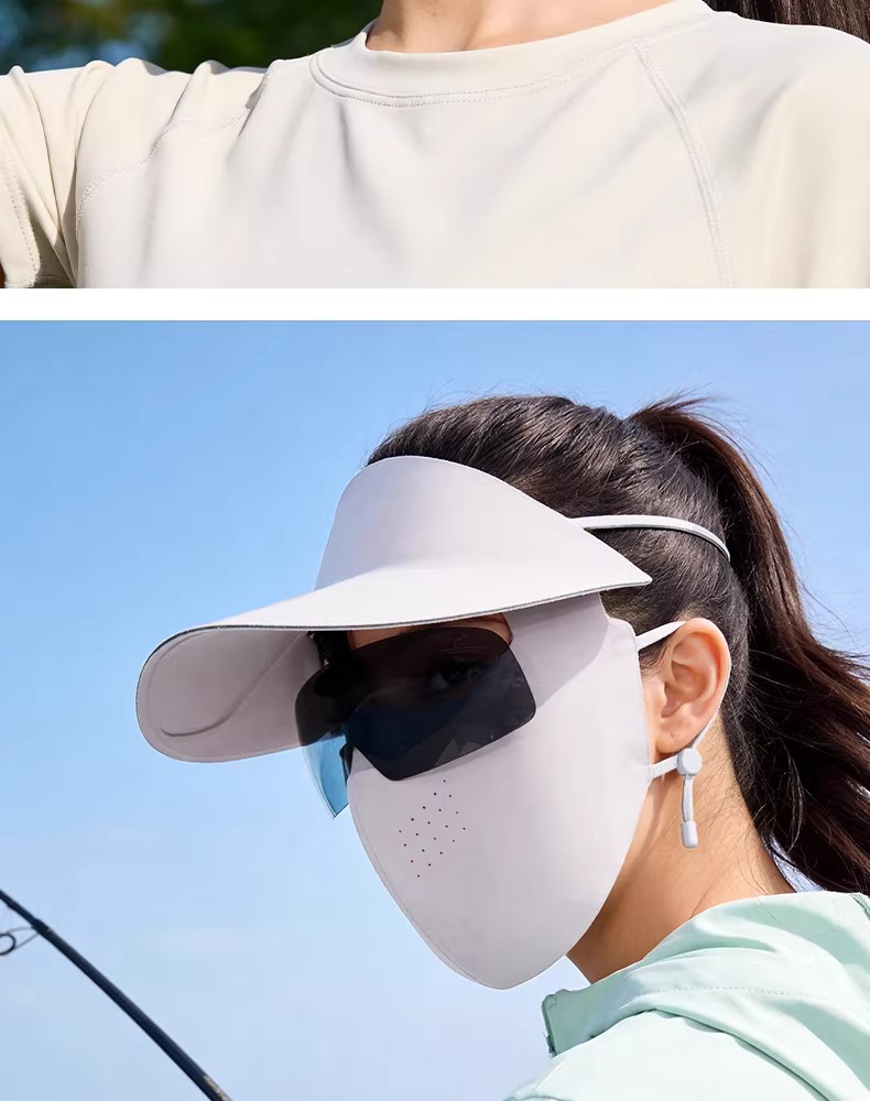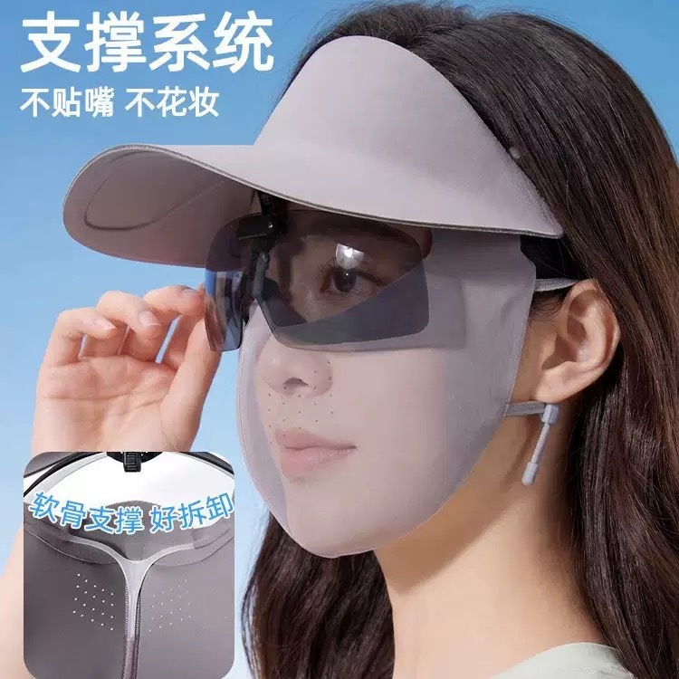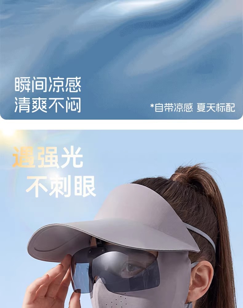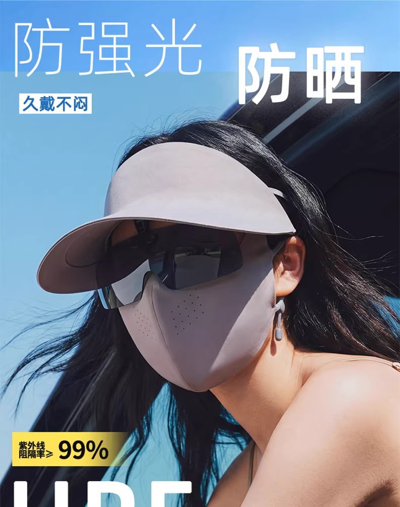 防晒面罩夏季遮全脸帽檐一体薄脸基尼女防紫外线骑行透气冰丝口罩