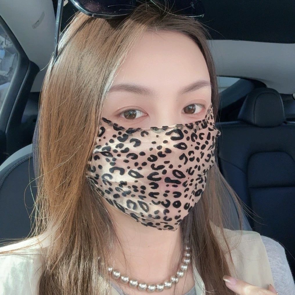 豹纹网纱防晒口罩女2026新款春夏季透气轻薄护眼角显脸小蕾丝面罩