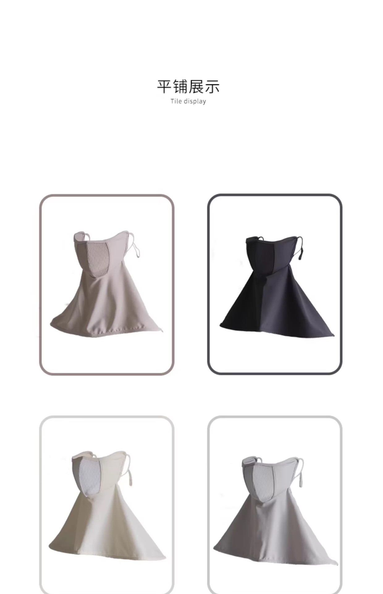 功能: 防紫外线 面料名称: 锦纶 款式: 半遮面 主面料成分: 锦纶 品牌: 其他 货号: B26-29 产地: 金华 风格: 原创设计 主要下游平台: 淘宝,京东,PDD,快手,速卖通,天猫, 有可授权的自有品牌: 否 是否跨境出口专供货源: 否 颜色: 深灰色,浅卡其,浅灰色,奶黄色,黑色 上市年份/季节: 2026年春季 主面料成分含量: 61%(含)-70%(含) 尺码: 均码 适用场景: 户外环境 风格分类: 原创设计 流行元素分类: 无 重量: 0.02 kg/件