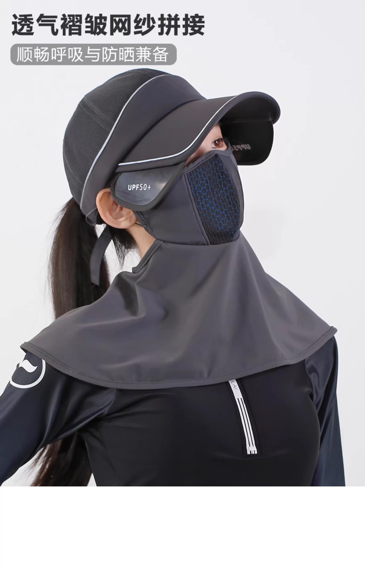 新款护眼角防晒面罩夏透气防紫外线遮阳冰丝护颈口罩户外骑行开车