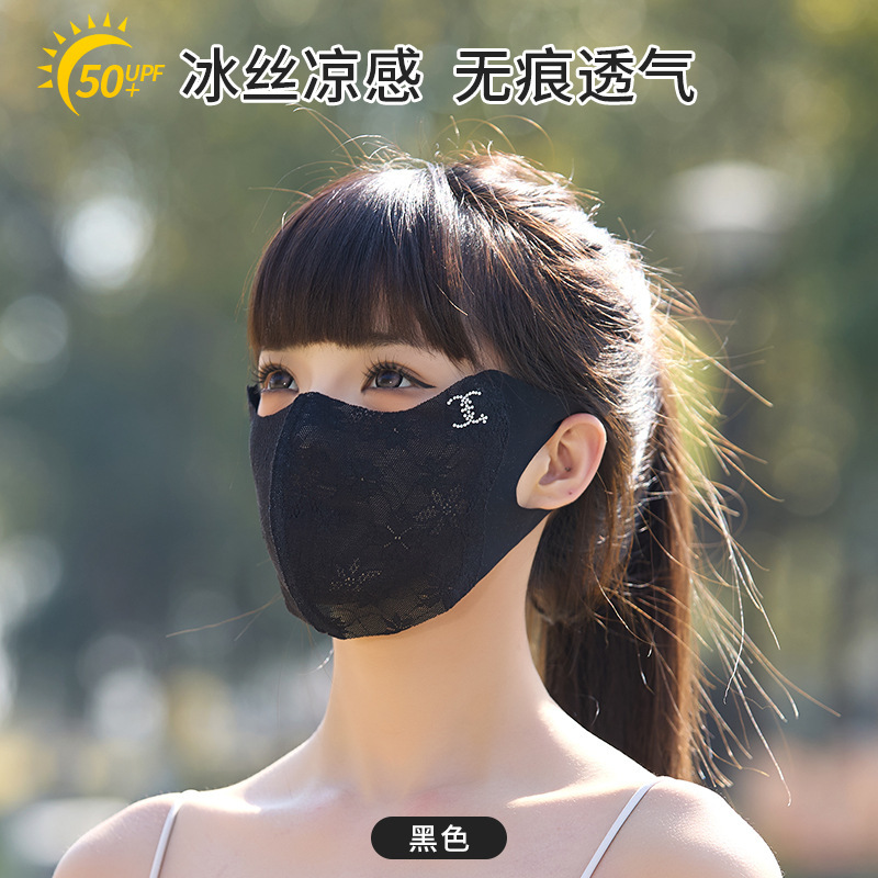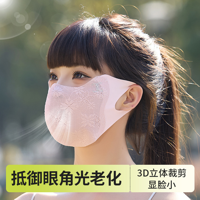 夏季防晒口罩女高颜值护眼角薄款透气个性拼接网纱户外防紫外线