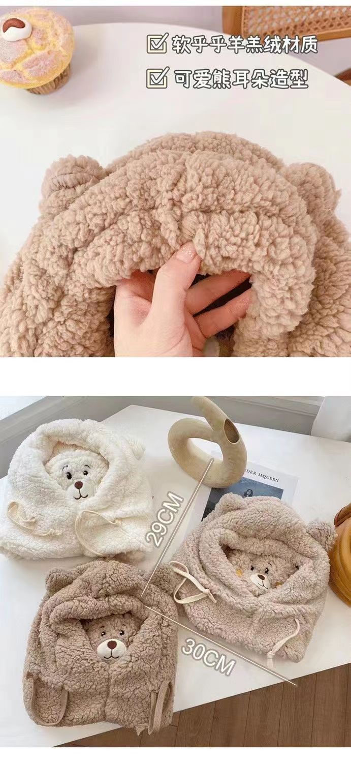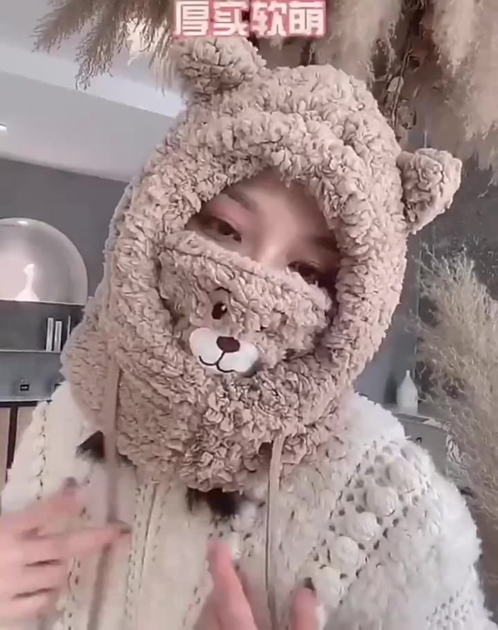 可爱小熊帽子加厚秋冬季保暖防风防寒护耳口罩围巾一体帽个性风潮 投诉