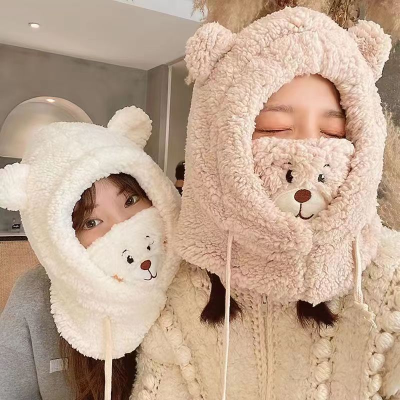 可爱小熊帽子加厚秋冬季保暖防风防寒护耳口罩围巾一体帽个性风潮
