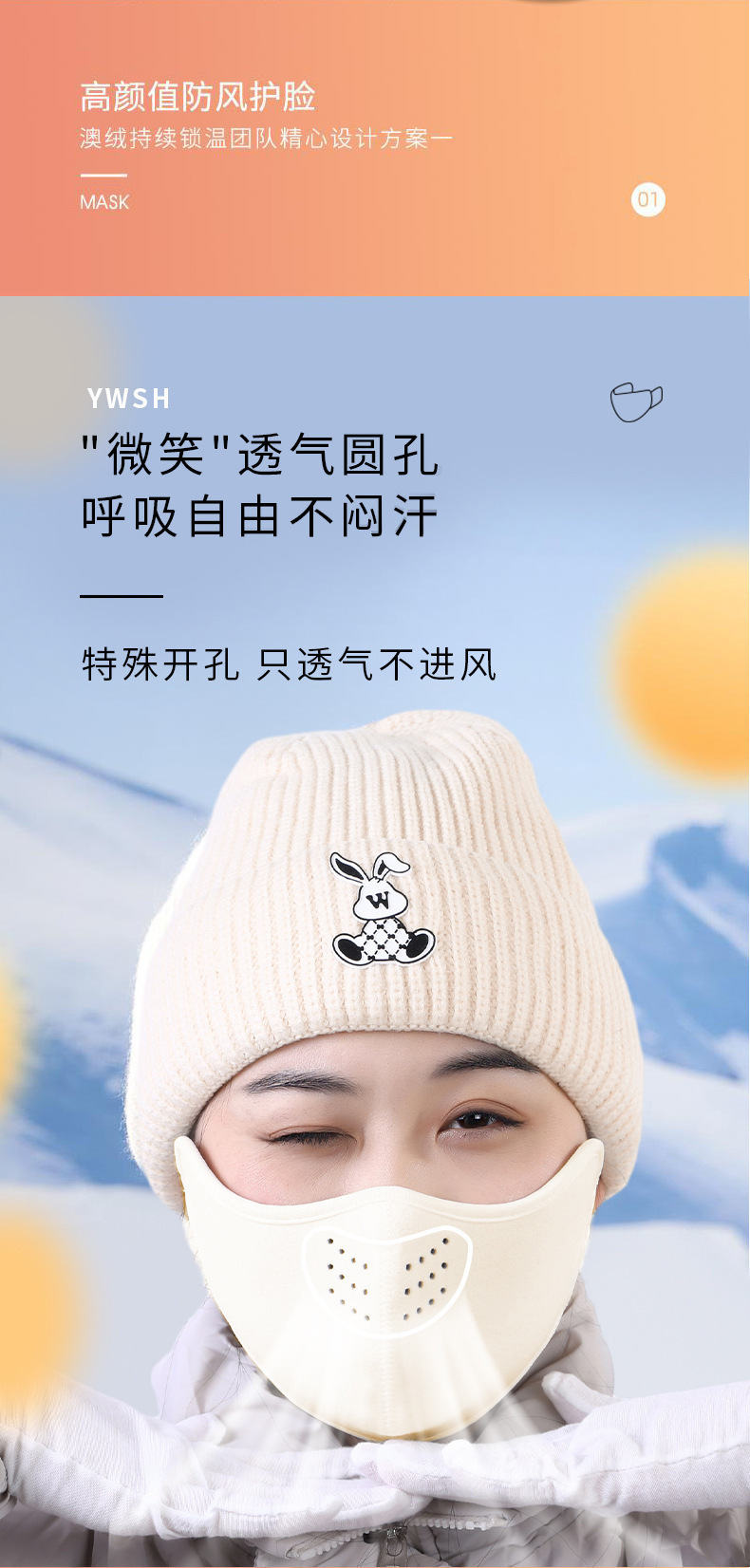 冬季双面德绒立体保暖口罩女户外骑行防寒可戴护眼角防风面罩御寒