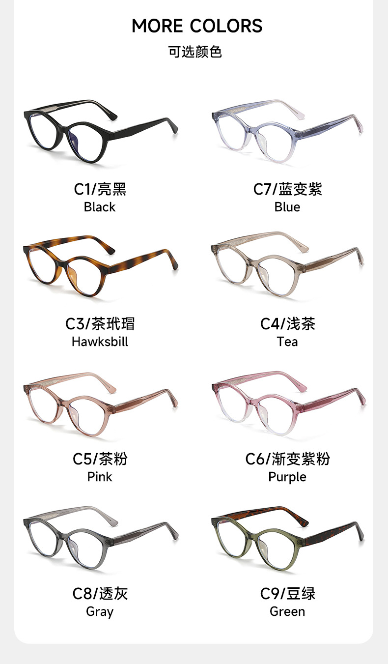 新潮韩版猫眼型tr超轻平光镜素颜阅读防蓝光眼镜可配近视框架眼镜 English | 投诉