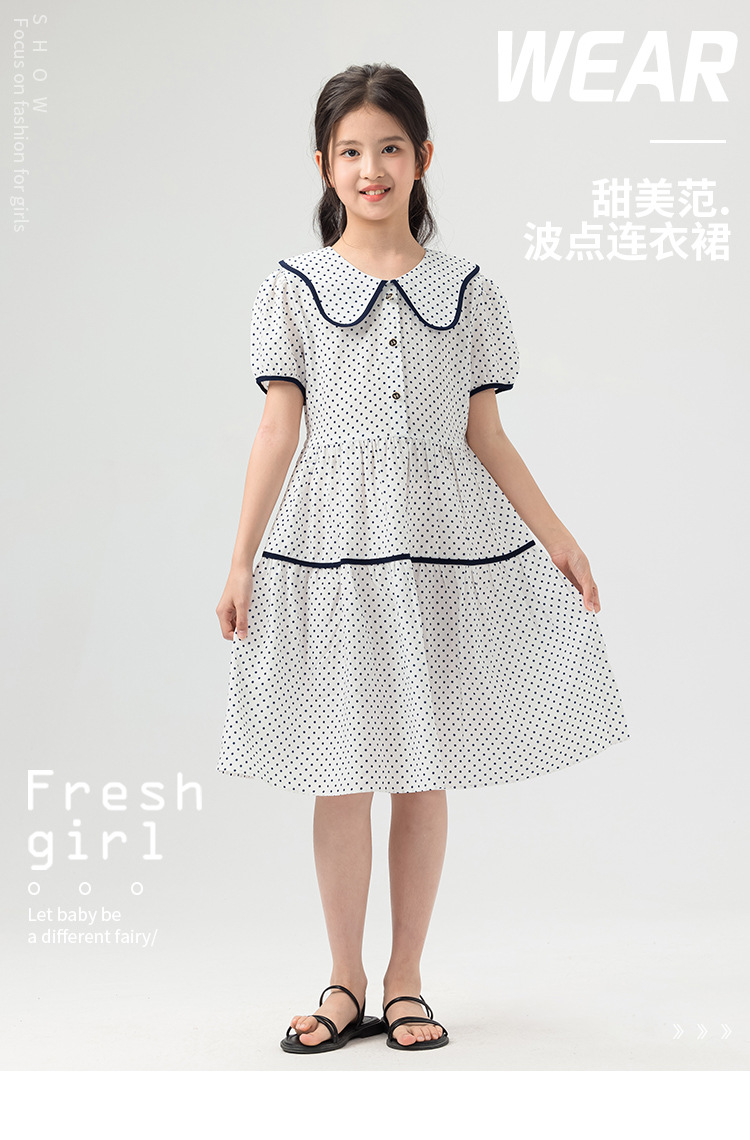 主面料成分: 棉 面料名称: 棉 款式: 短袖 面料工艺: 柔软处理 品牌: phelfish 元素: 印花 裙类别: 连衣裙 裙摆样式: 公主裙 风格: 公主 安全等级: B类 主面料成分含量: 100 产地: 广东 适用性别: 女 平车针距12~14针/3cm: 是 适合年龄段: 中大童(8岁以上,140cm以上) 上市年份季节: 2025夏季 货源类别: 现货 图案: 圆点 货号: 2566 适合季节: 夏季 重量: 0.5 kg/件