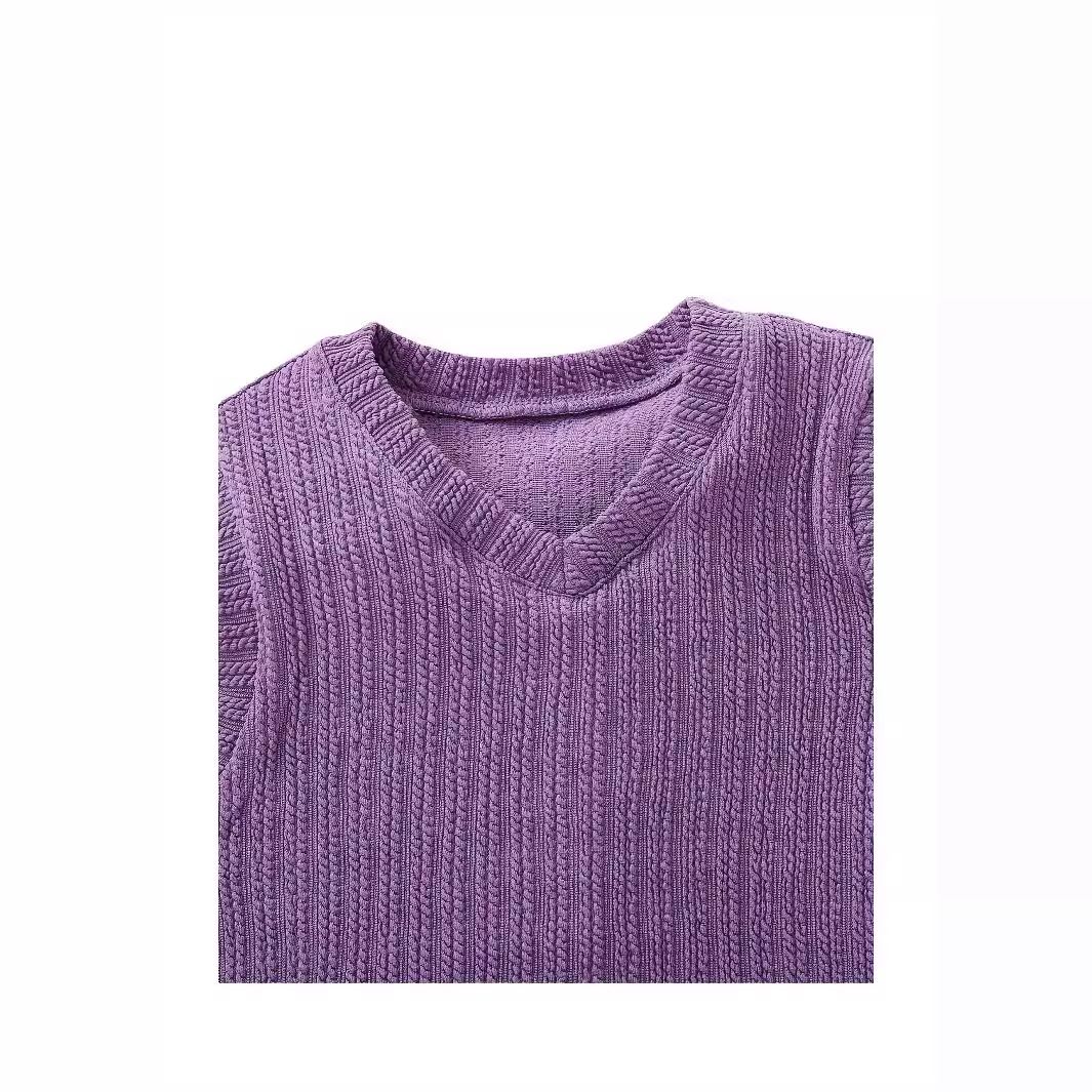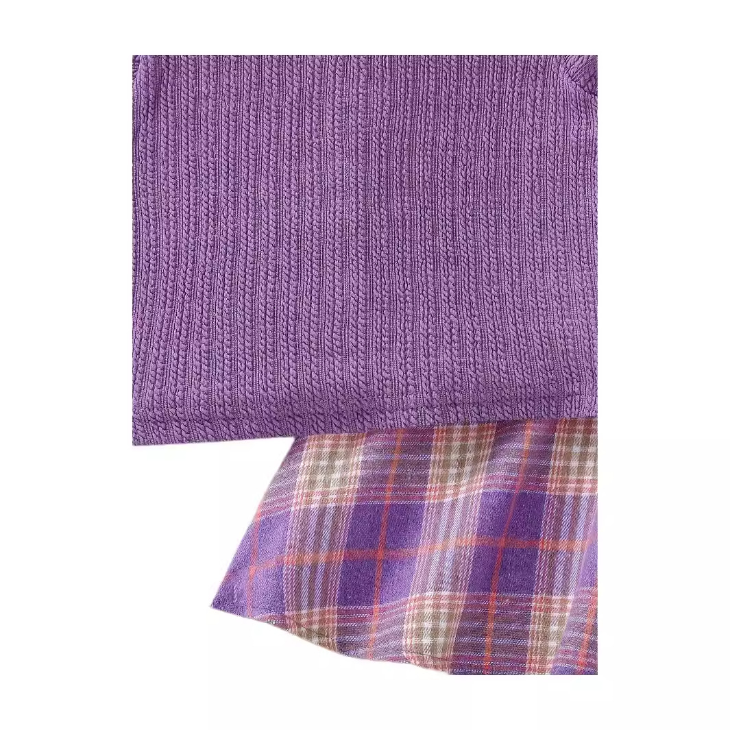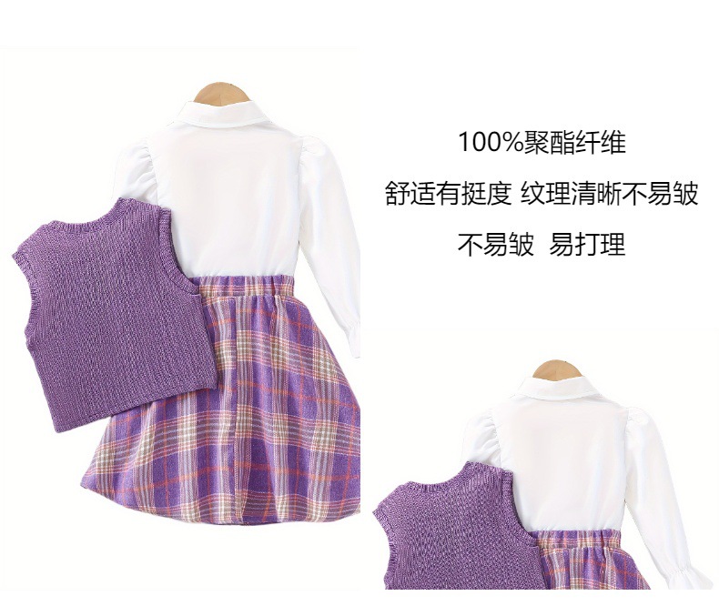 跨境女童裙套装韩版深紫色针织背心格子裙娃娃领衬衫学院风三件套 投诉
