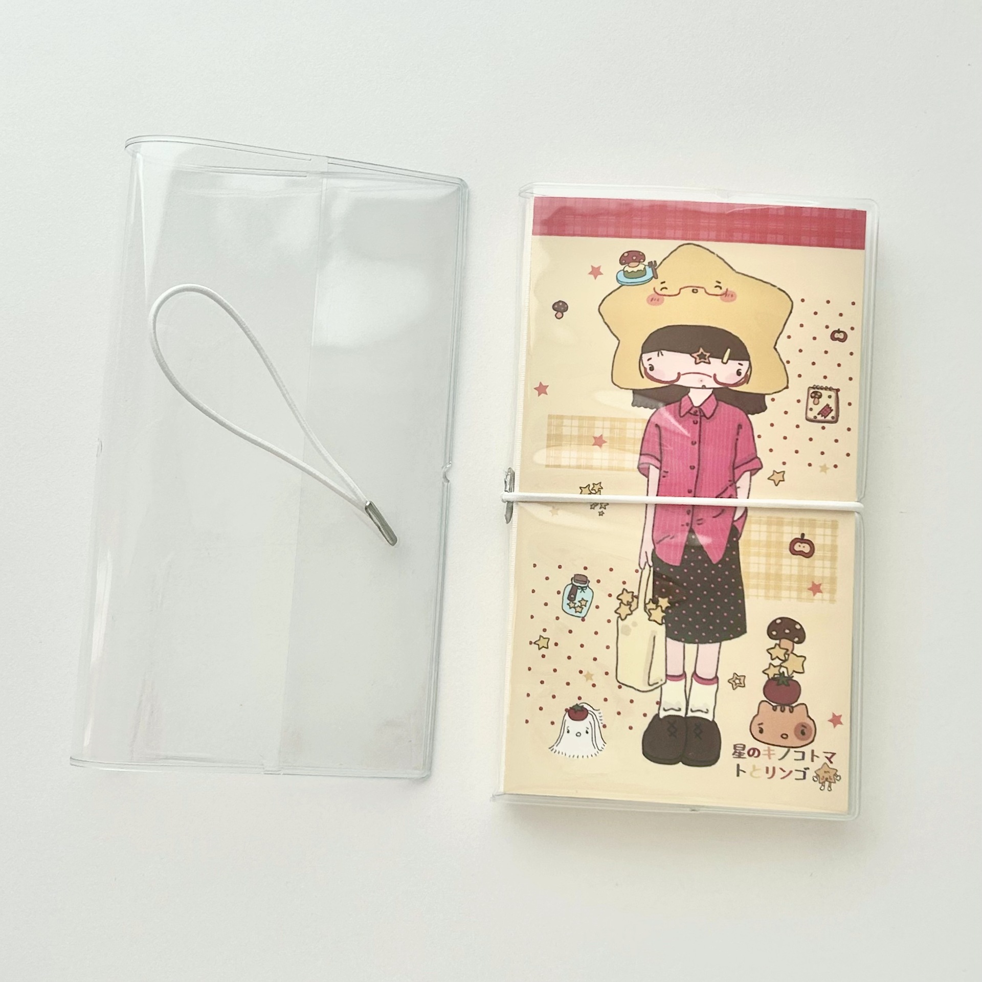 A6窄本尺寸为透明PVC材质,带绑带,适用于9(宽)*15.9(长)*1.2(厚)cm本子