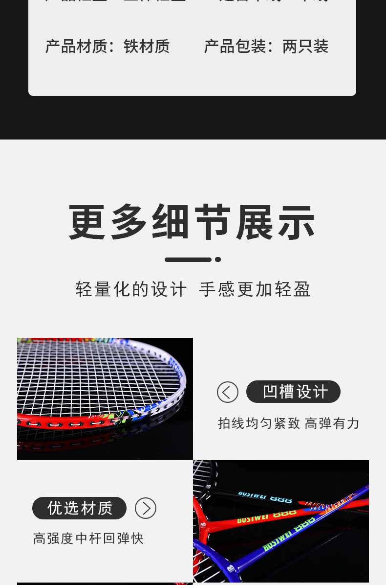 波士威铁合金羽毛球拍锻炼耐打耐用训练比赛羽毛球拍厂家直销 投诉