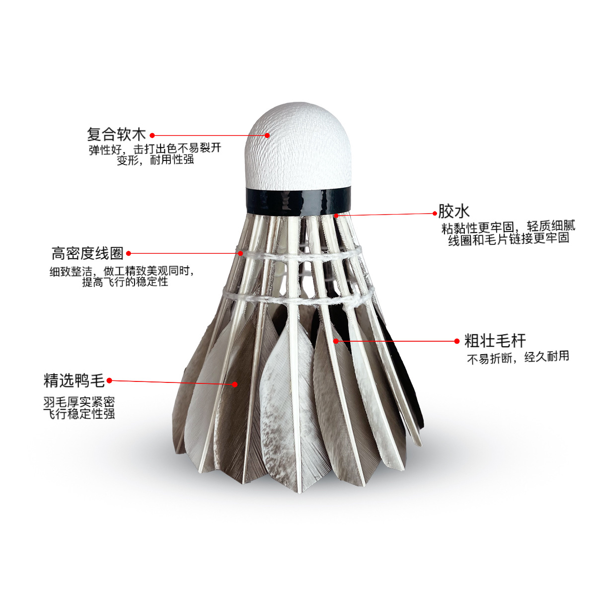 同风起羽毛球品牌直销耐打12只装花鸭翎羽毛球 训练球专用业余家