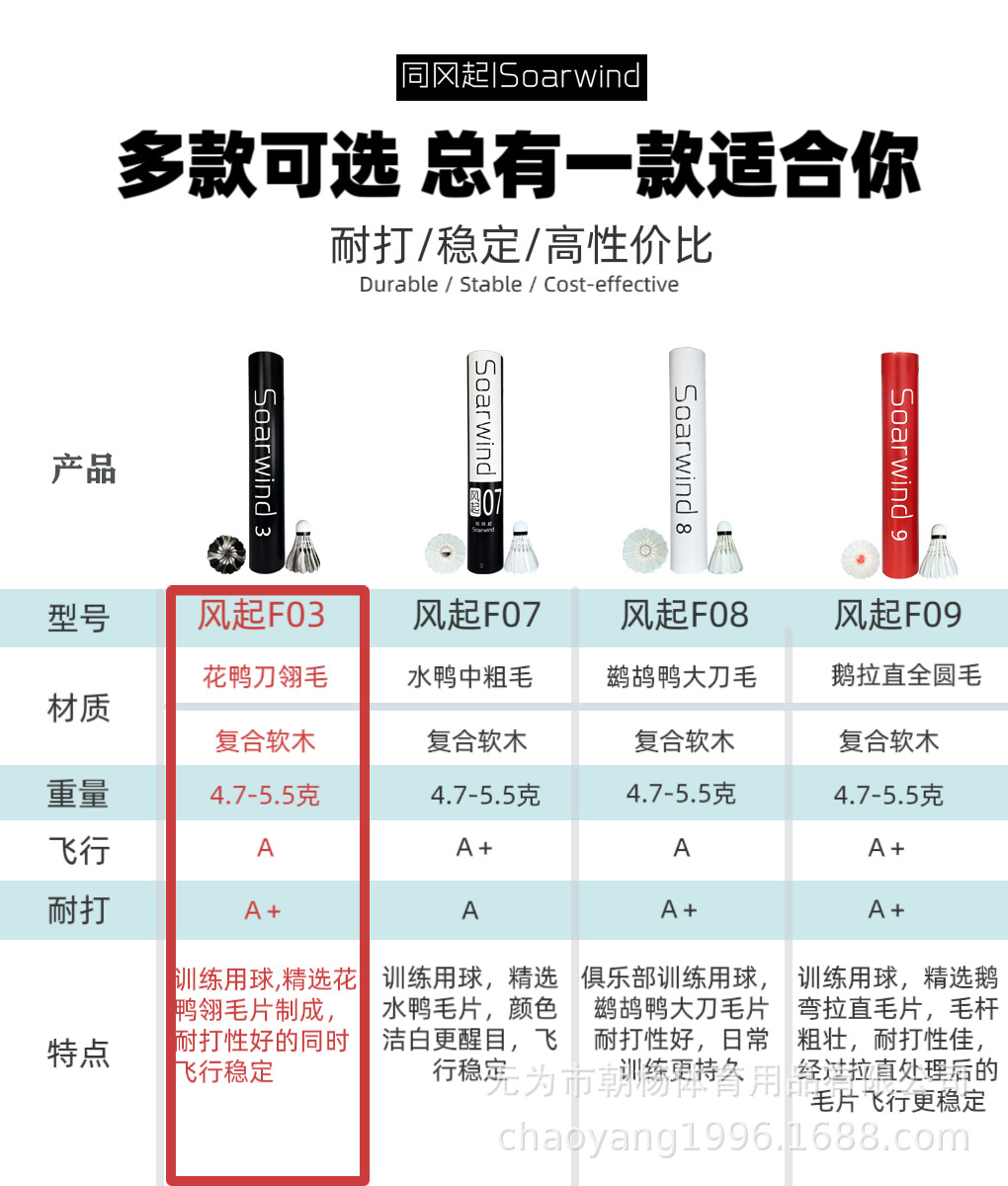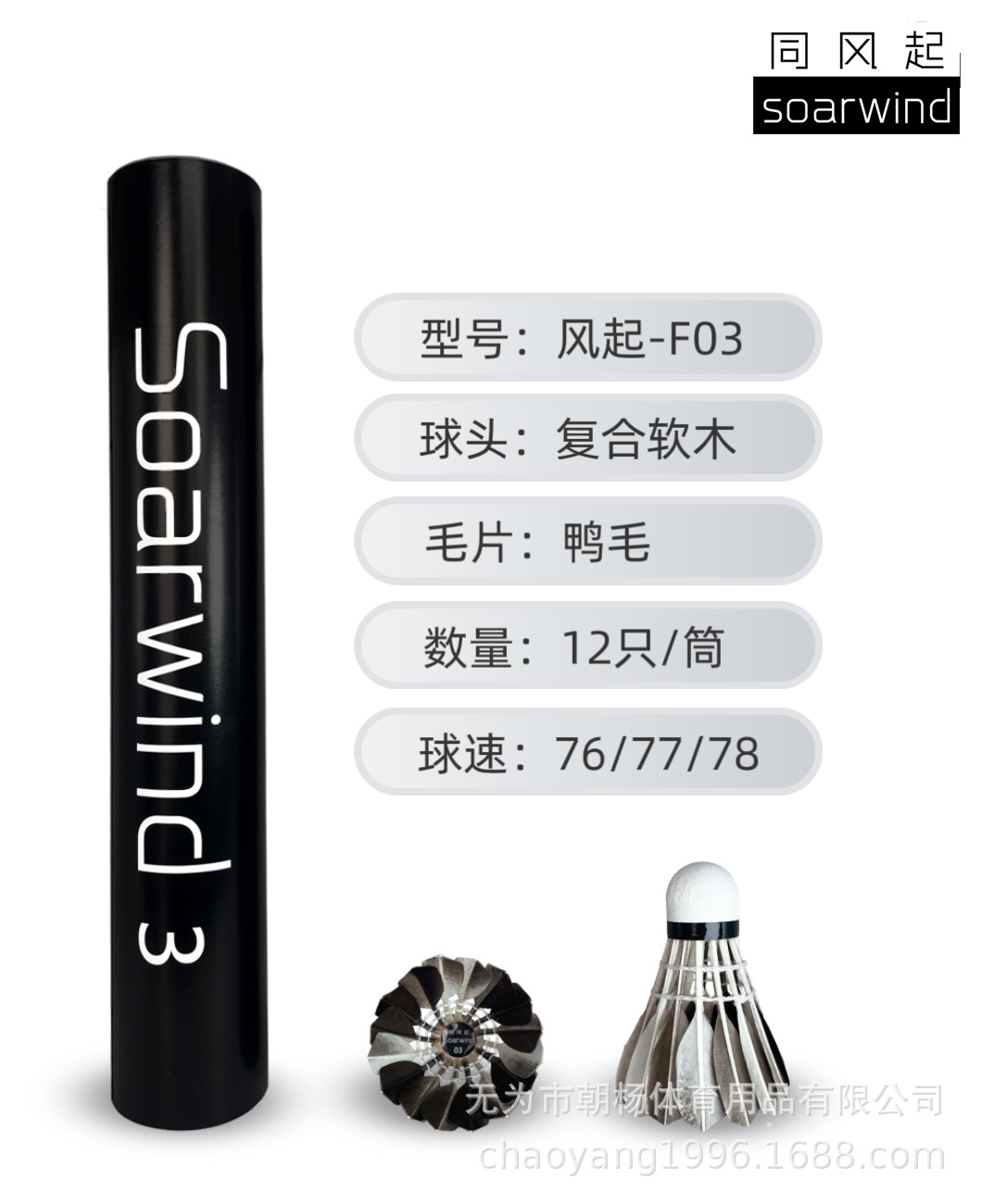品牌: 同风起 规格: 12只装 产品类别: 鸭毛球 球头类别: 双拼球头 毛片样式: 大方 适用场景: 球场,乒羽网球运动,其他球类运动 货号: 风起F03 产地: 安徽无为 颜色: 风起F03超耐打12只装76速,风起F0 专利类型: 无 外贸出口认证: 其他 质检报告编号: 其他