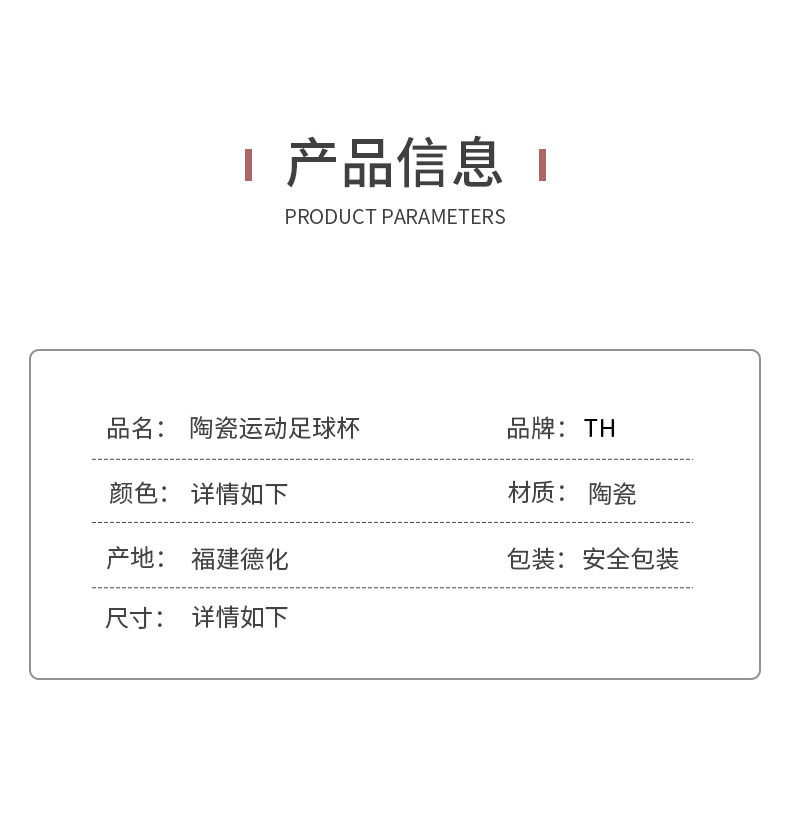 材质: 瓷 适用人群: 通用 风格: 创意潮流 适用节日: 圣诞节,情人节,春节,父亲节,母亲节,教 颜色: 足球,棒球 容量: 301-400ml 专利: 否 是否跨境出口专供货源: 是 产地: 福建 适用送礼场合: 生日,满月,旅游纪念,毕业,乔迁,派对聚 适用送礼关系: 情侣,夫妻,同事,朋友,长辈,孩子,同学 送礼用途: 广告礼品,促销赠品,会议礼品,福利礼品, 是否属于礼品: 是,个人礼品 版权: 无 货号: TH1688155
