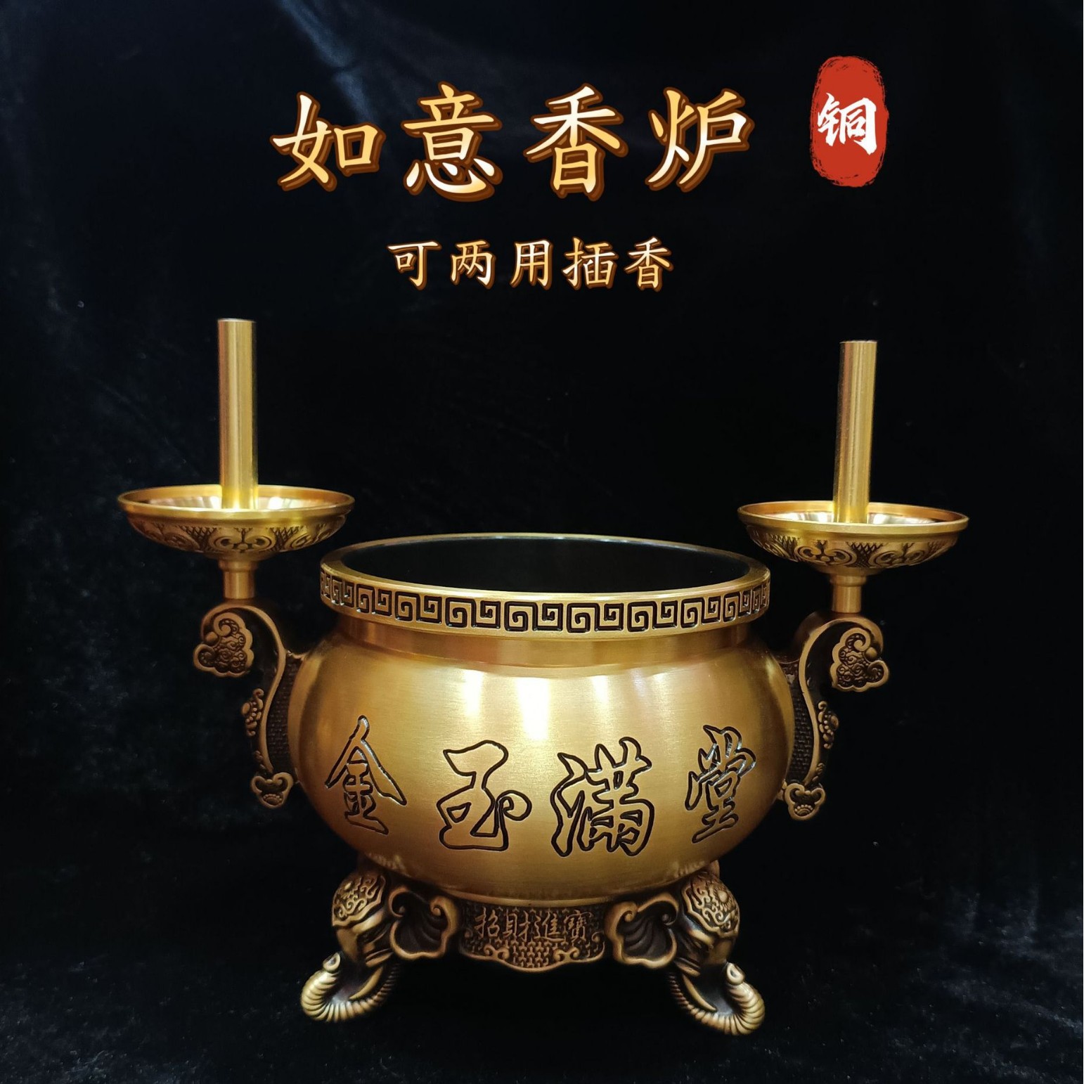 厂家直销批发铜如意香炉金玉满堂供奉两用插香香炉摆件客厅桌面 English | 投诉