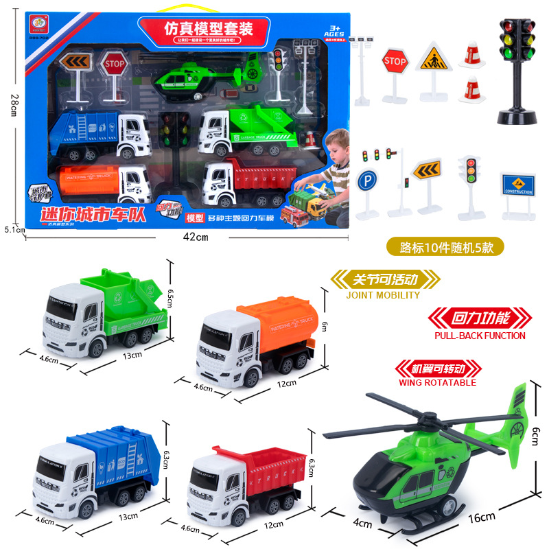 地摊热卖儿童回力车大号工程车玩具礼盒套装男孩军事消防汽车模型 English | 投诉