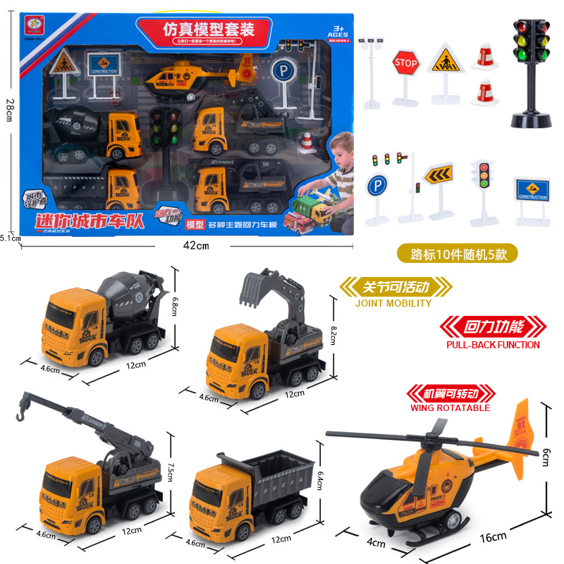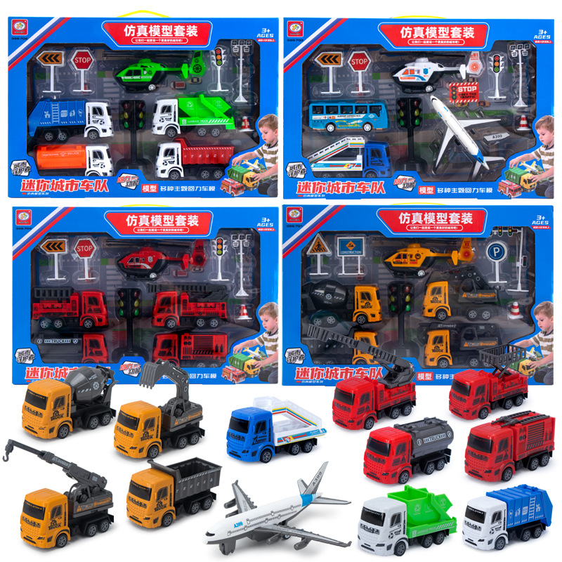 地摊热卖儿童回力车大号工程车玩具礼盒套装男孩军事消防汽车模型