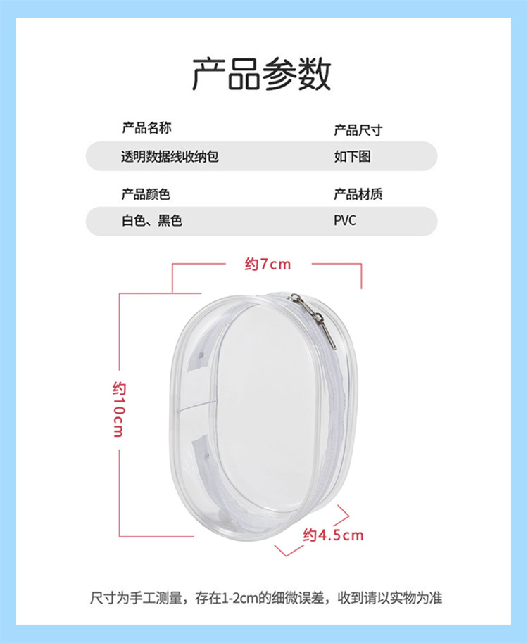 PVC数据线充电收纳袋透明防尘随身盲袋空袋子便携晒娃痛包 投诉