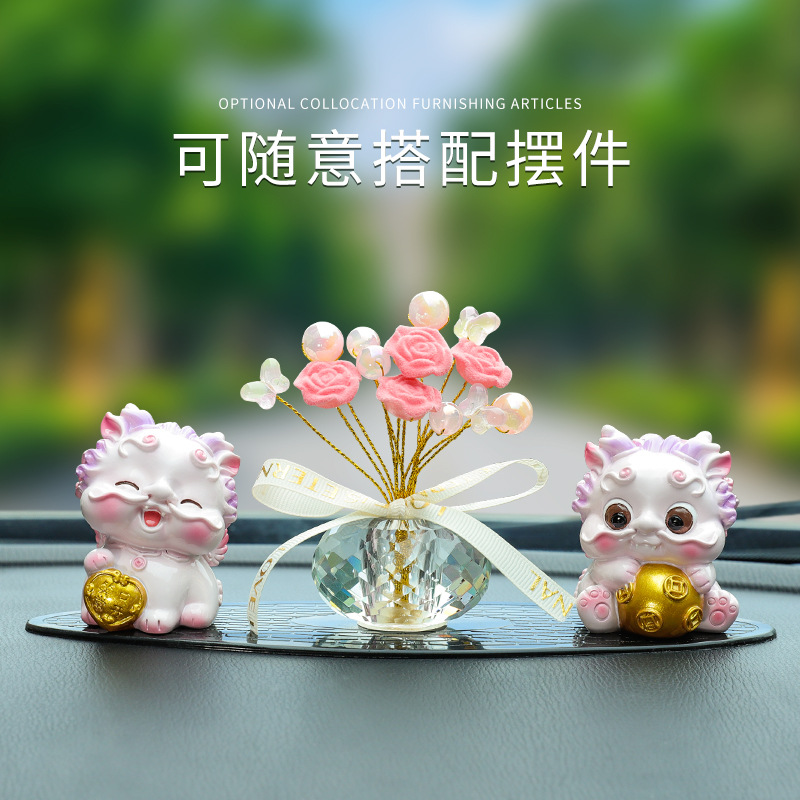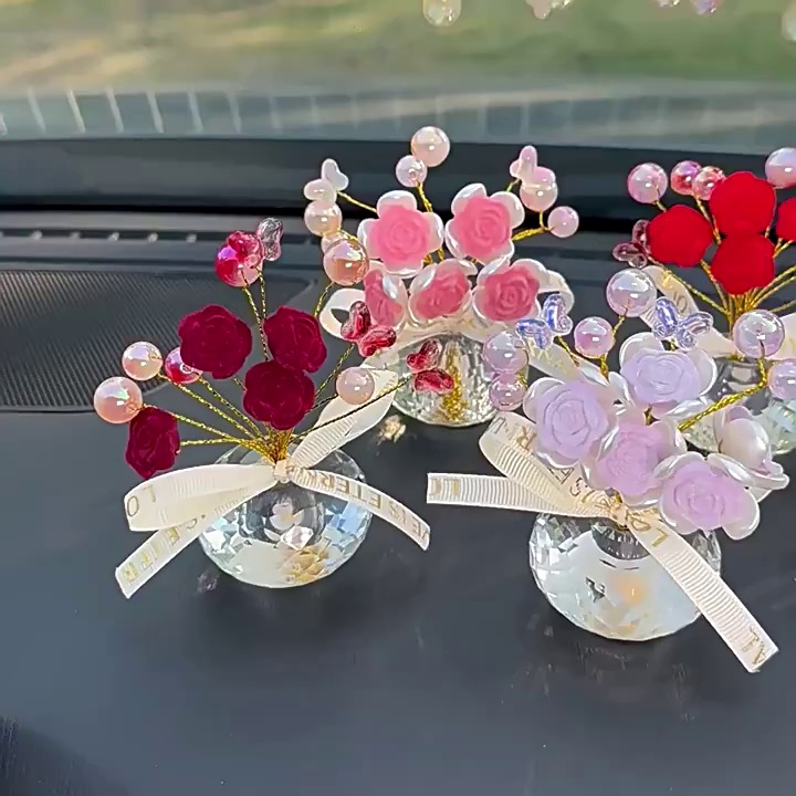 新款水晶玫瑰花汽车摆件搭配车内装饰摆件创意盆摘车载摆件批发