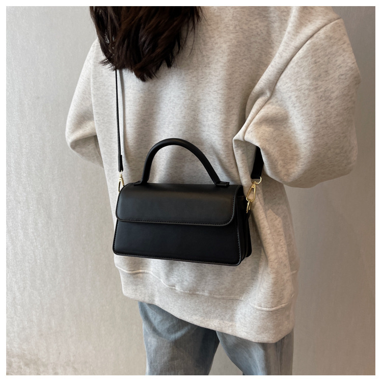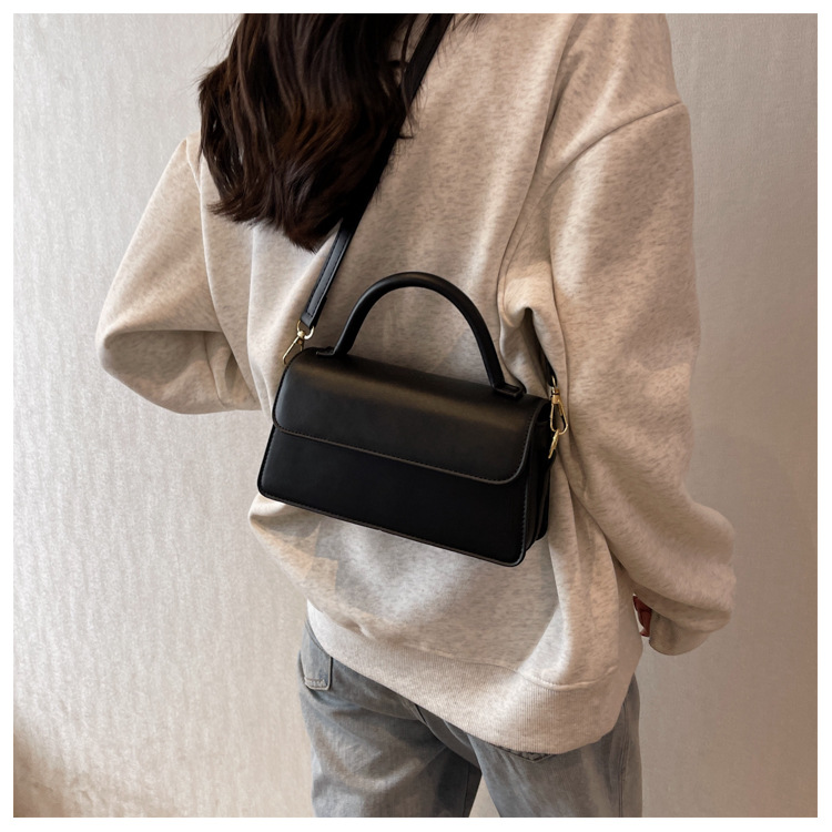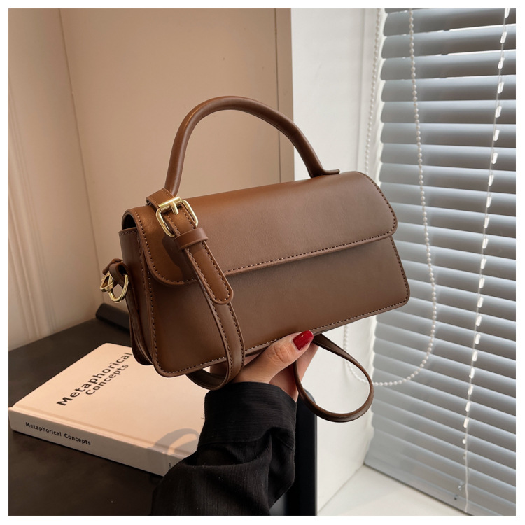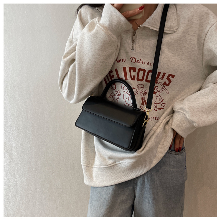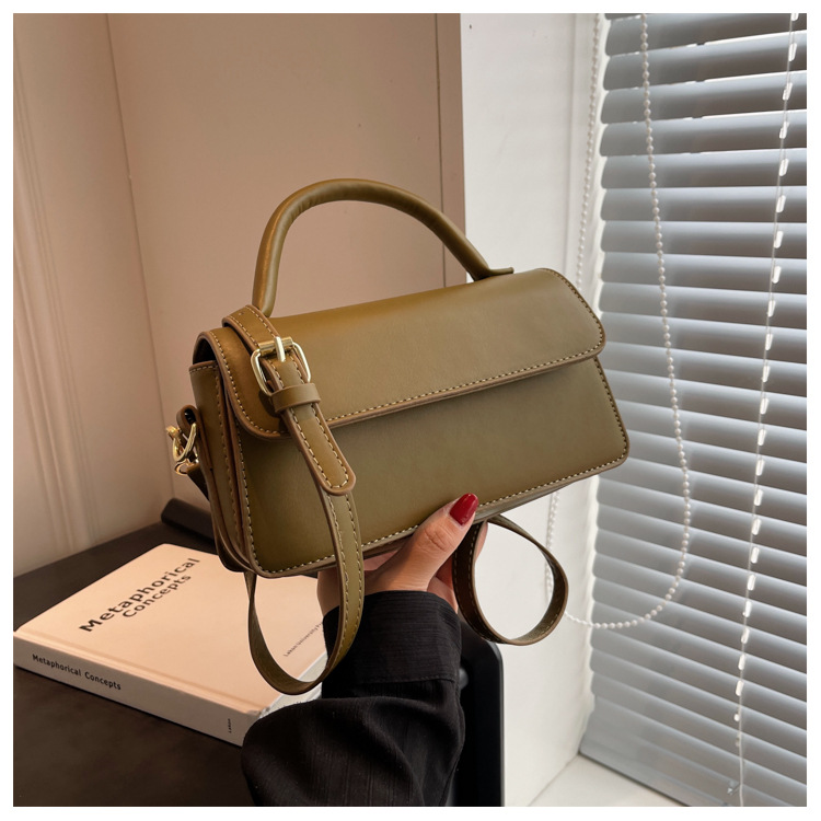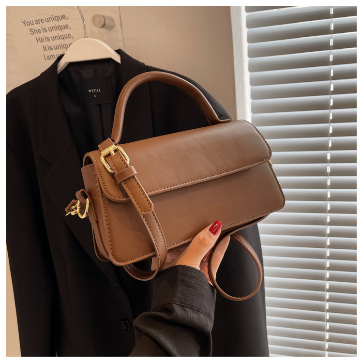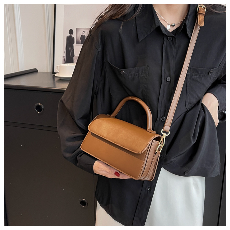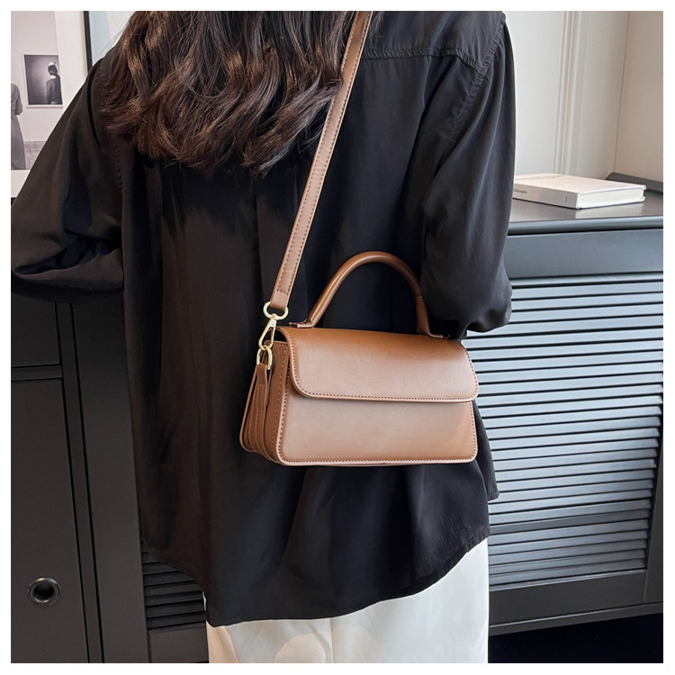 跨境外贸女包2026新款复古质感纯色简约手提百搭单肩斜挎小方包批