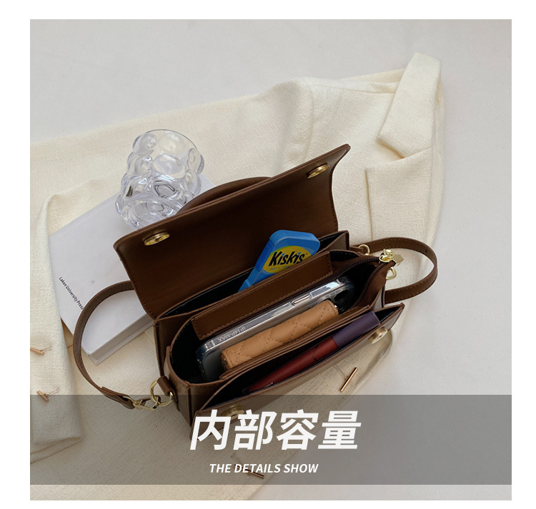 材质: PU 箱包潮流款式: 小方包 箱包大小: 小 里料质地: 涤纶 品牌: 无 风格: 都市简约 流行元素: 车缝线 颜色: 棕色,黑色,卡其色,咖色 货号: 8537 上市年份季节: 2026年春季 箱包形状: 横款方型 开盖方式: 包盖式 包内部结构: 拉链暗袋 硬度: 软 外袋种类: 立体袋 有可授权的自有品牌: 否 有无夹层: 无 肩带根数: 单根 适用场景: 日常搭配 重量: 0.5 kg/个