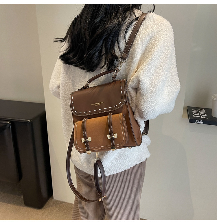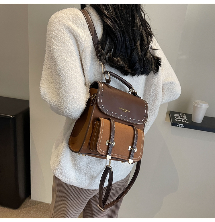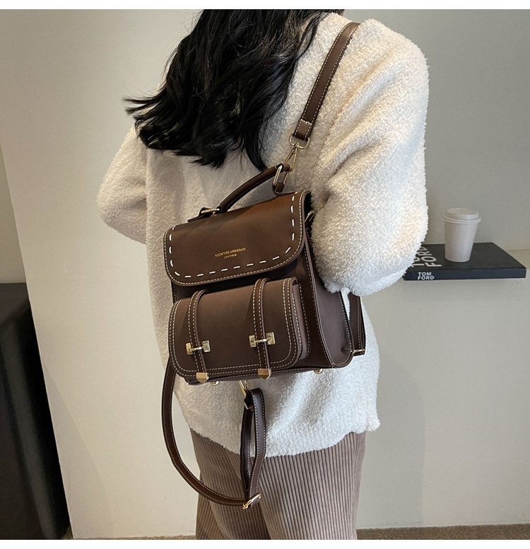 欧美复古洋气双肩包2025新款时尚休闲手提韩版书包复古外出背包批 English | 投诉