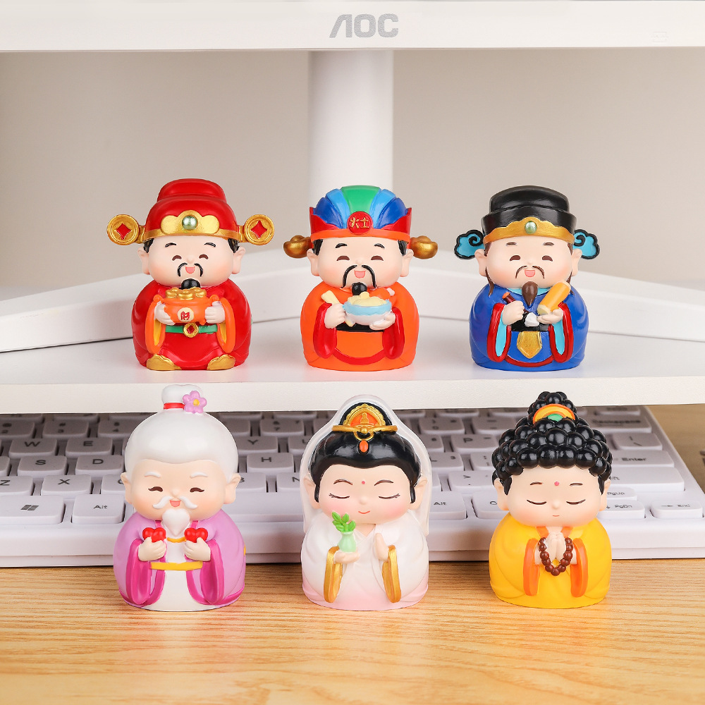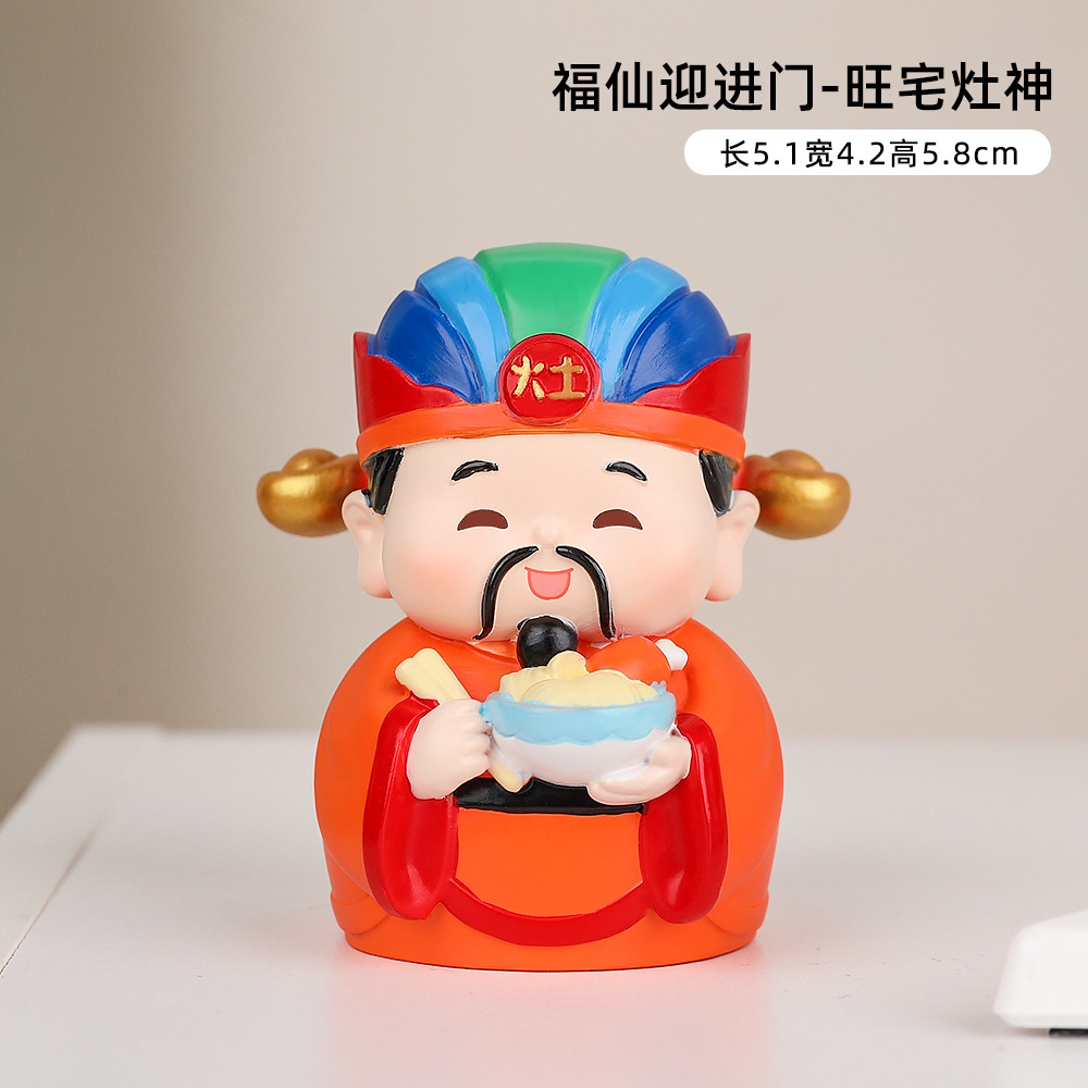 福仙迎进门神仙摆件财神供奉办公室电脑桌面玄关装饰小摆件装饰