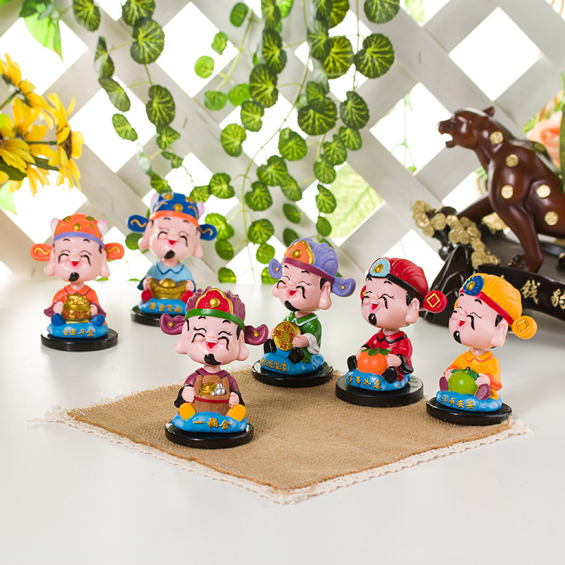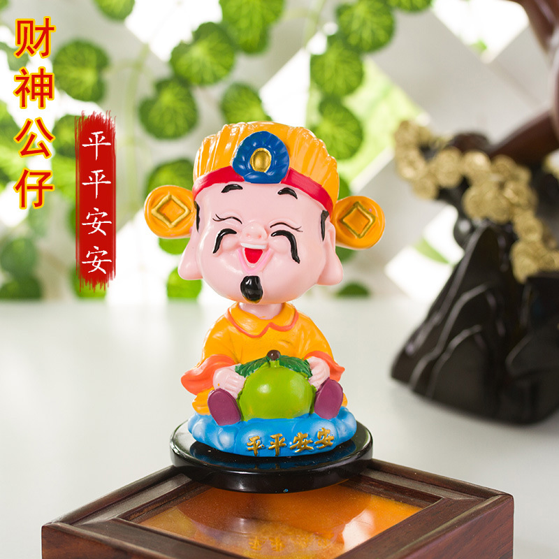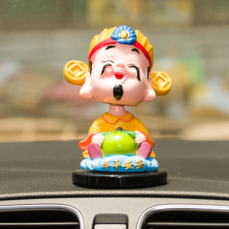 汽车摆件摇头 创意Q版财神平平安安摇头公仔摆件 摔不坏车内摆件