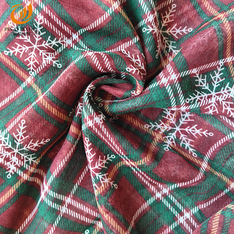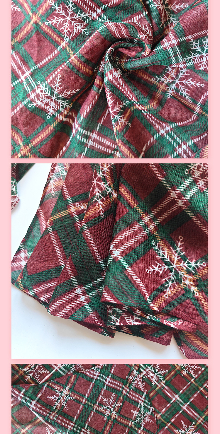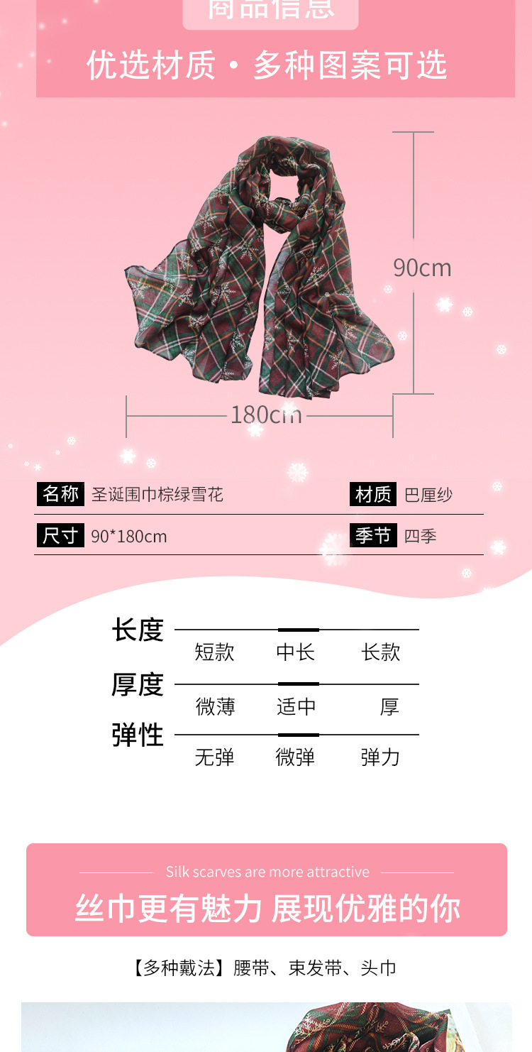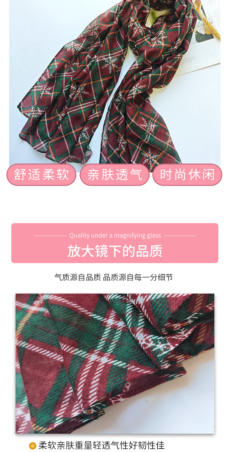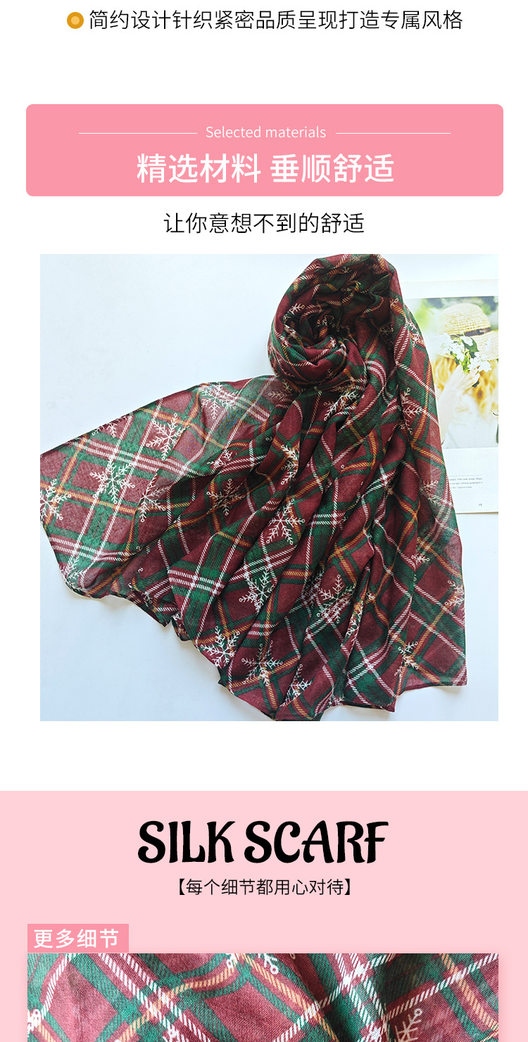 2025新款热销围巾棕绿雪花圣诞围巾格子印花巴厘纱长款丝巾批发 投诉