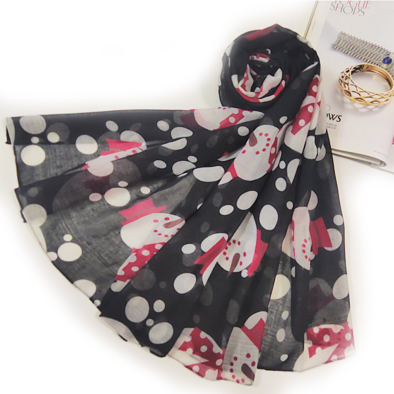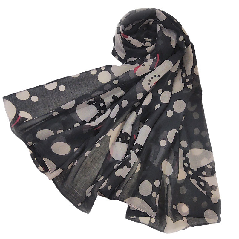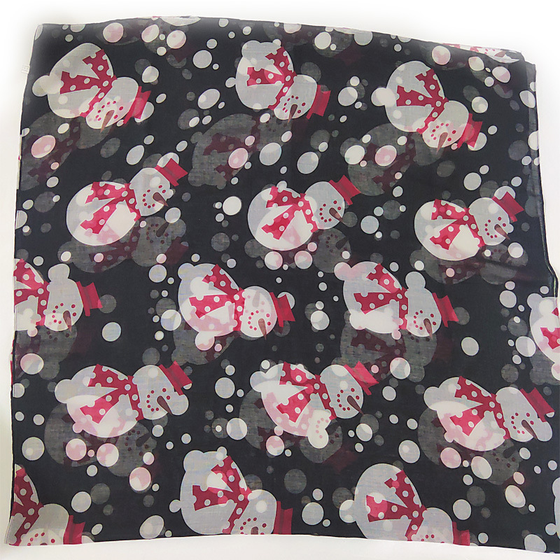 圣诞节2色雪人印花保暖巴厘纱围巾新款欧美街头圣诞节围巾批发