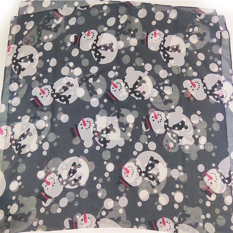圣诞节2色雪人印花保暖巴厘纱围巾新款欧美街头圣诞节围巾批发 投诉