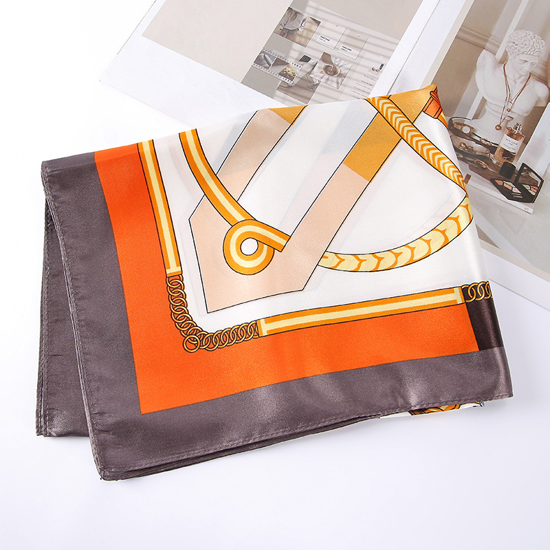 新款现货批发有光色丁方巾头巾韩版头巾图腾印花平纹围巾厂家现货