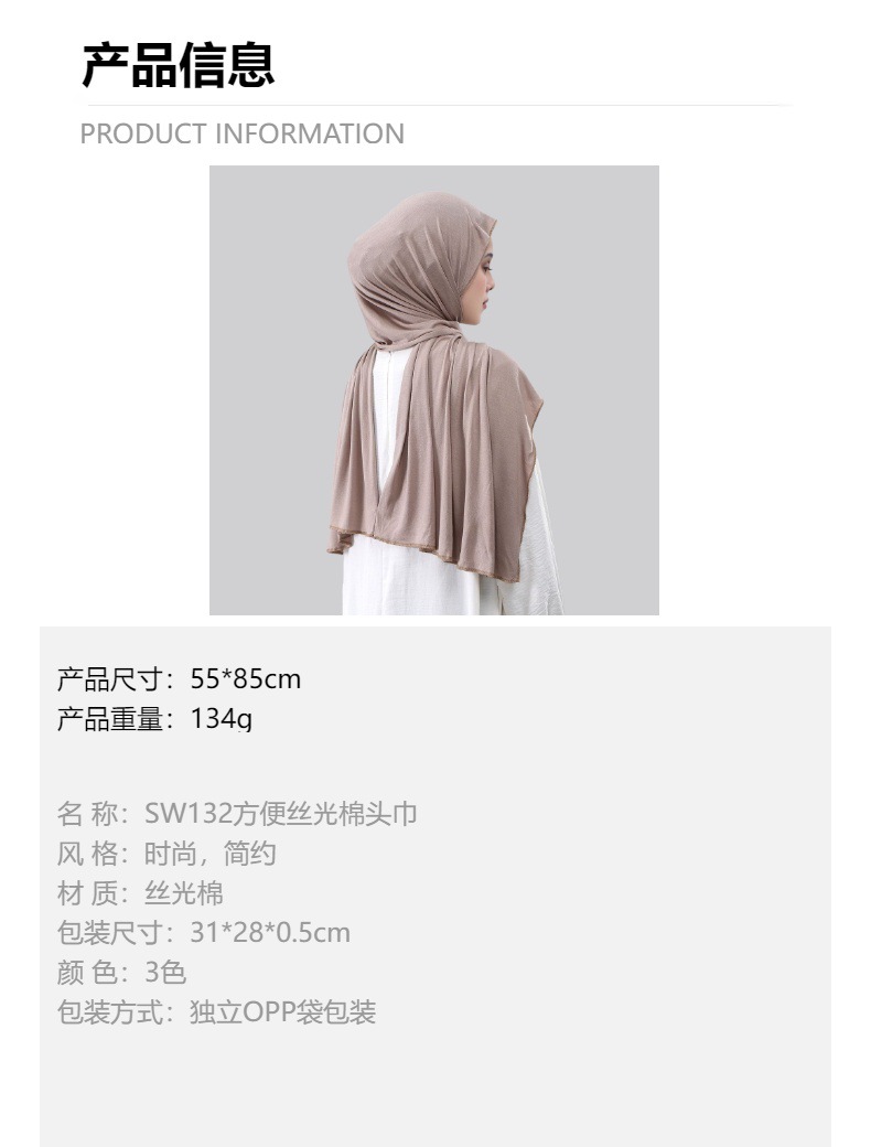 材质: 丝光棉 风格: 简约 适用性别: 女 货源类别: 现货 产品类别: 头巾 适合季节: 夏季,冬季,春季,秋季 品牌: 其他 颜色: 1#,2#白色,3#卡其 长度(CM): 55*85cm 产地: 浙江 货号: SW132 宽度(CM): 55*85cm 编织方法: 经编 图案: 单色 是否外贸: 是 功能: 装饰 是否库存: 是 加工方式: 缎档 流行元素: 纯色 款式: 中长 重量: 0.2 kg/条