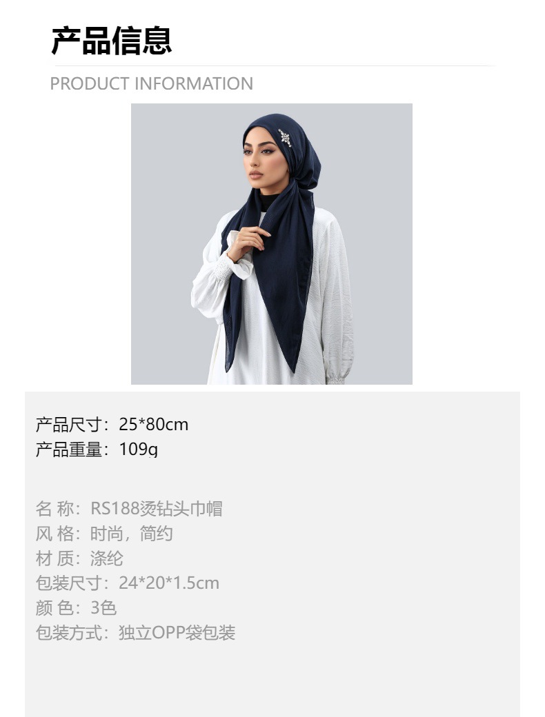 跨境热销新款涤纶烫钻头巾帽女时尚高品质百搭舒适柔软打底休闲帽 投诉