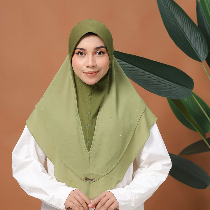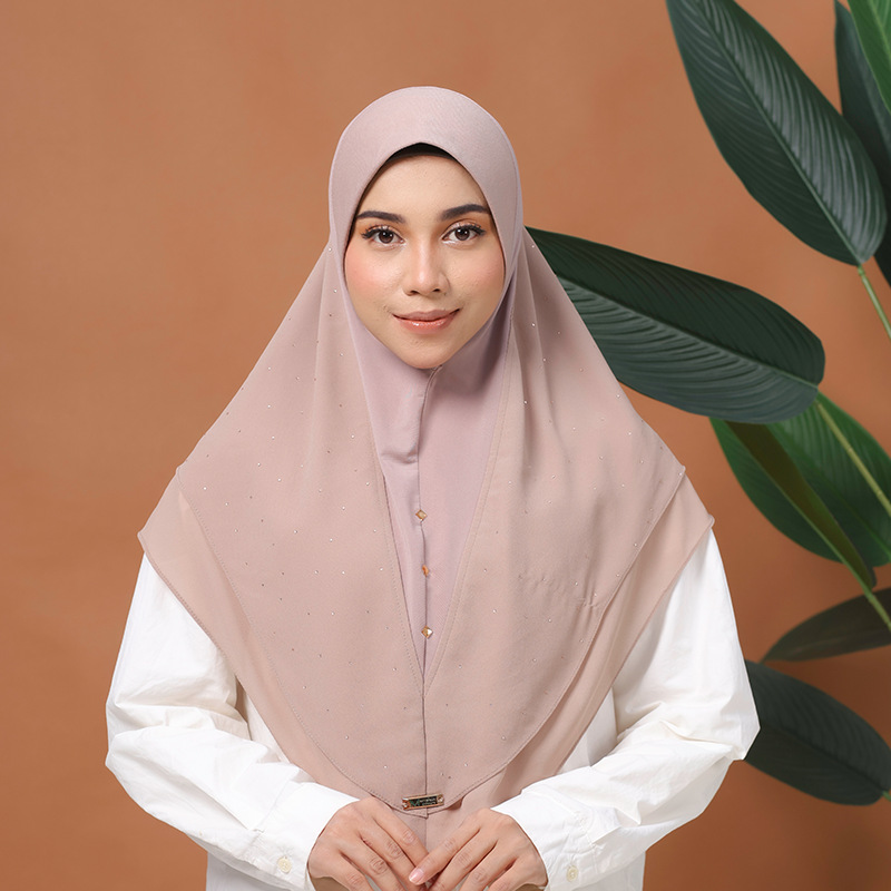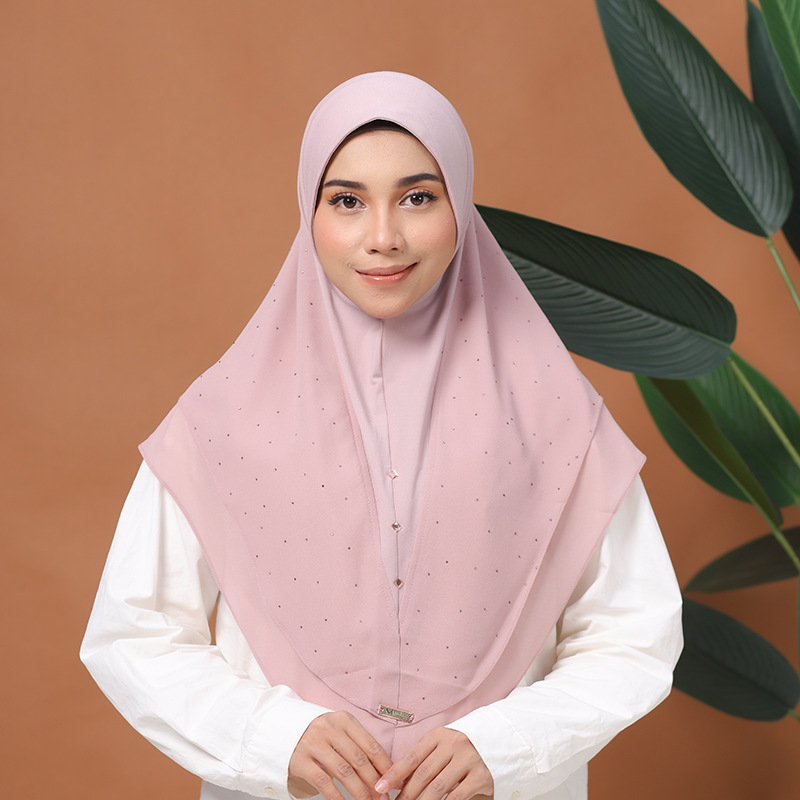 定制纯色头 巾珍珠雪纺烫钻方巾软帽檐中东女士盖头日常方便帽子
