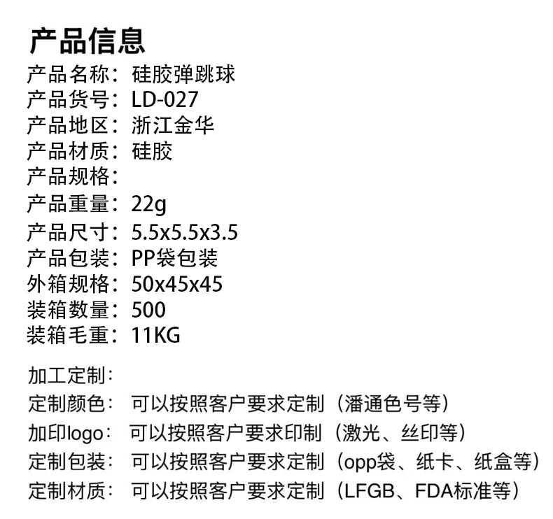 材质: 硅胶 品牌: 乐顿 是否能够DIY: 否 是否电动: 否 是否多功能: 否 适用年龄: 少年(7-14岁) 产地: 义乌 货号: LD-027 产品类别: 弹跳球 规格: 迷彩弹跳碗 包装方式: 纸卡吸塑 加工定制: 是 加工方式: LOGO贴牌 是否外贸: 否 是否有动漫形象: 否 专利及著作权申请时间: 无 是否有导购视频: 是 是否专供外贸: 否 3C配置类别: 14岁以上的玩具 有可授权的自有品牌: 否 重量: 0.25 kg/个