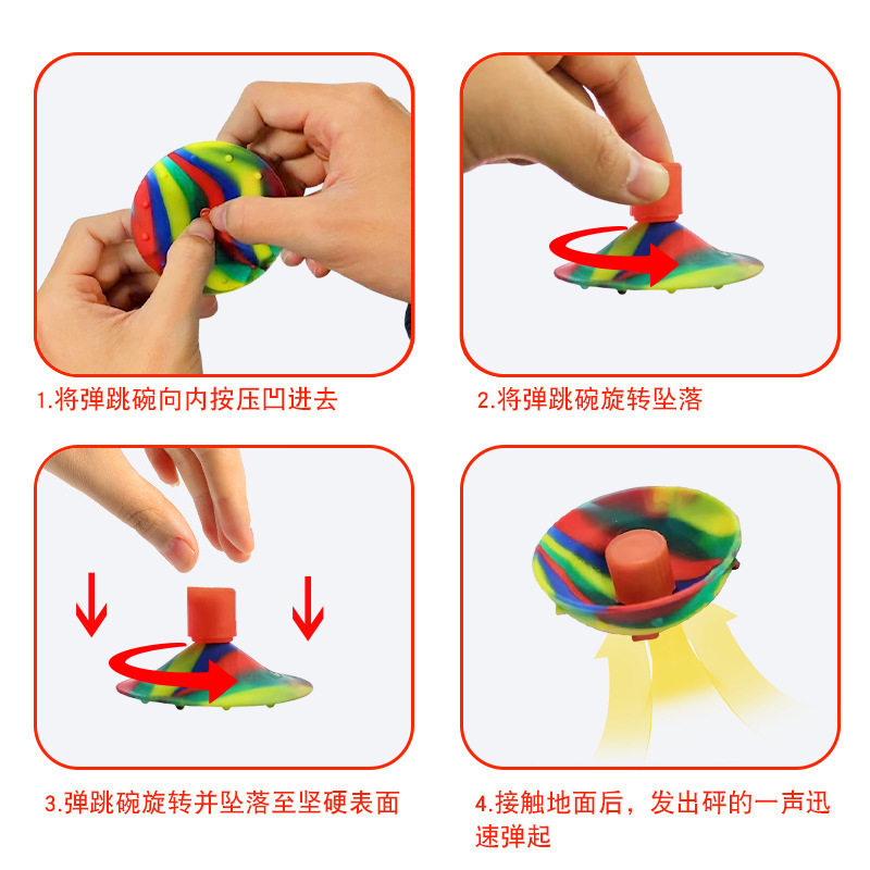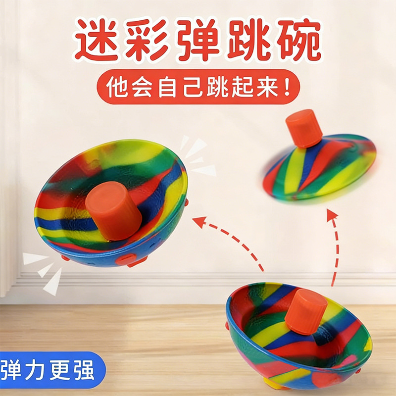 跨境爆款迷彩趣味玩具亲子互动新奇特炫彩旋转陀螺迷你硅胶弹跳碗