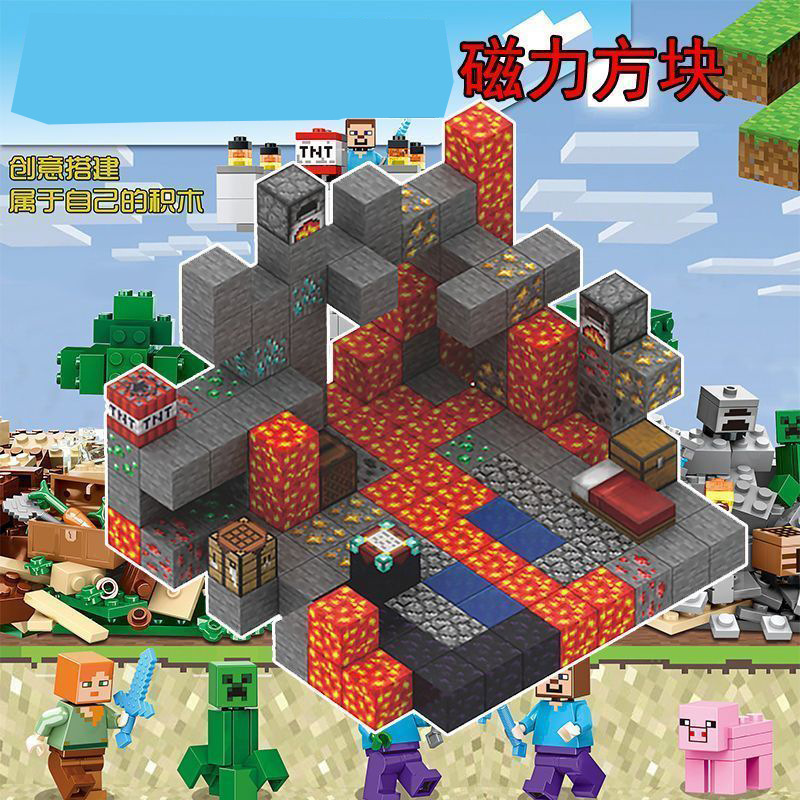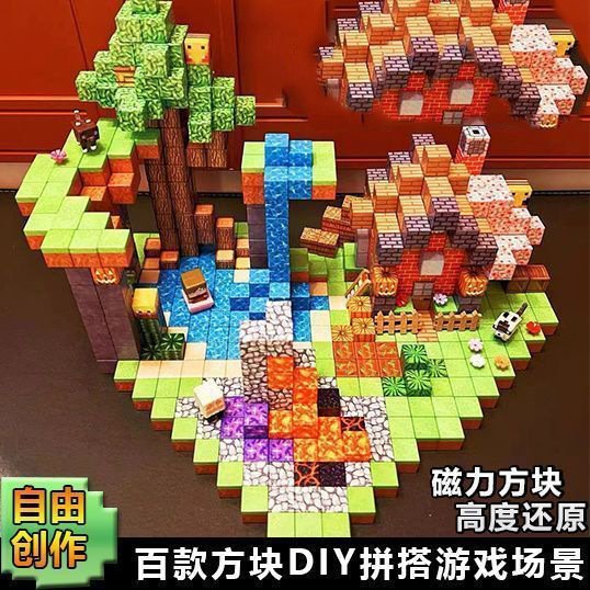 我的磁力世界方块积木百变磁吸拼装男孩DIY散装益智颗粒玩具批发