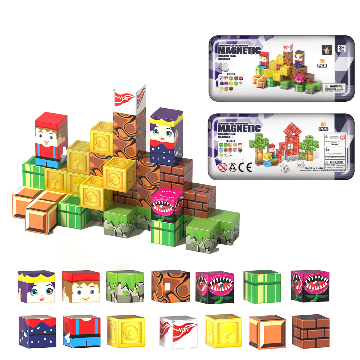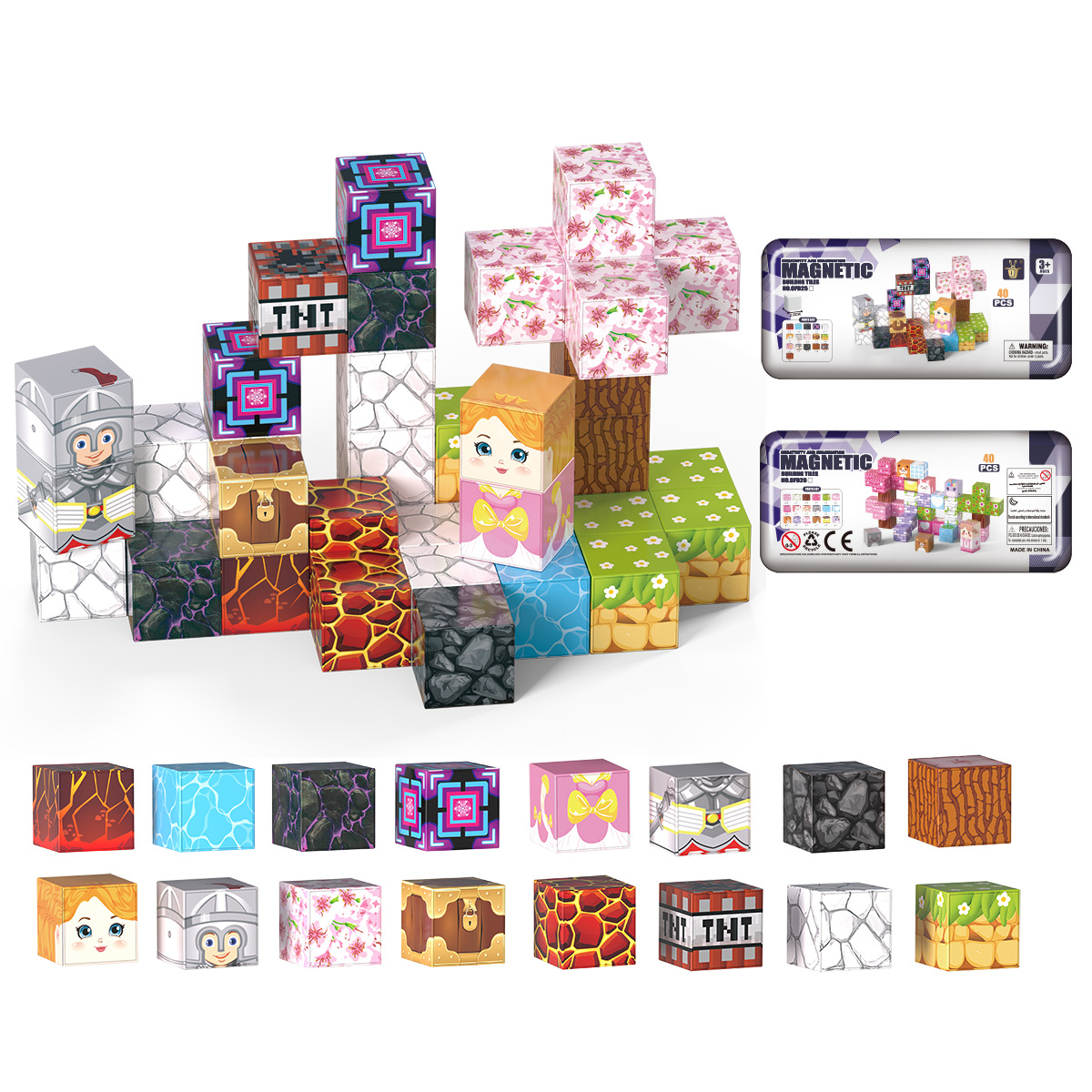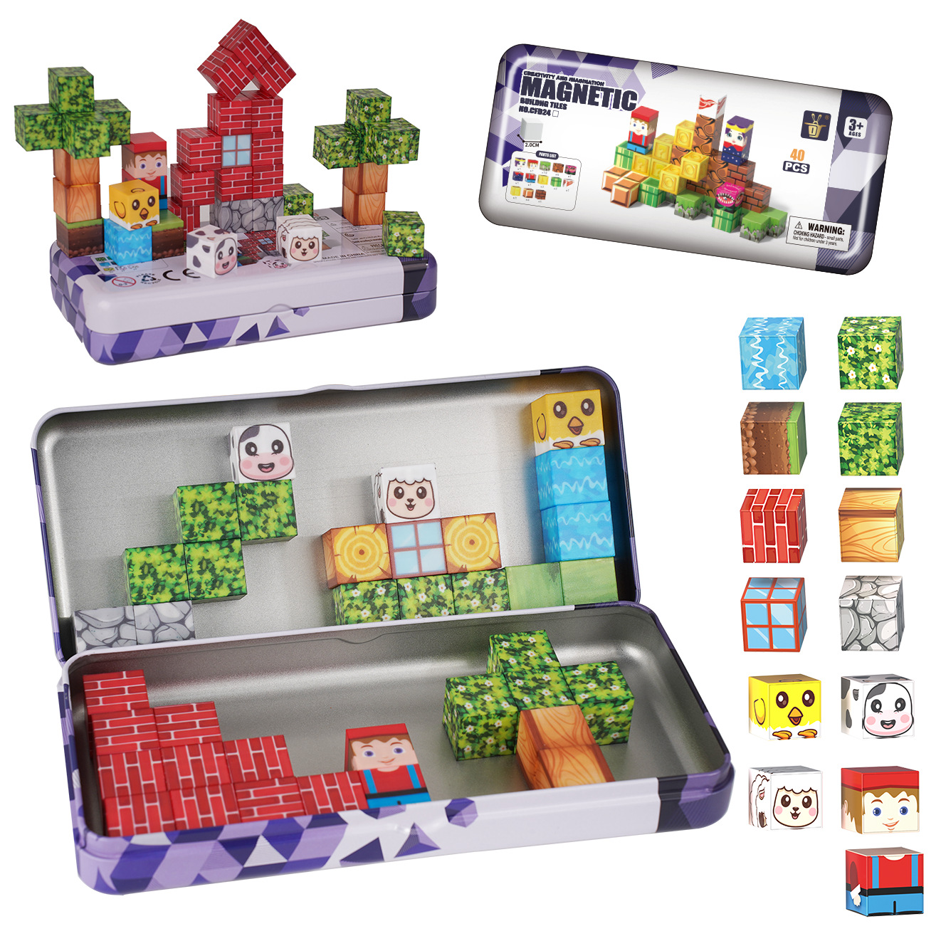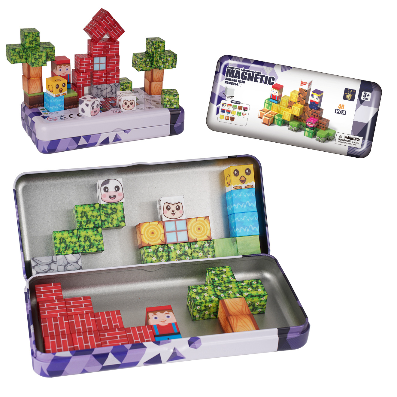 跨境磁玩世界拼装儿童益智立体块模型玩具厂家铁盒旅行装磁力积木