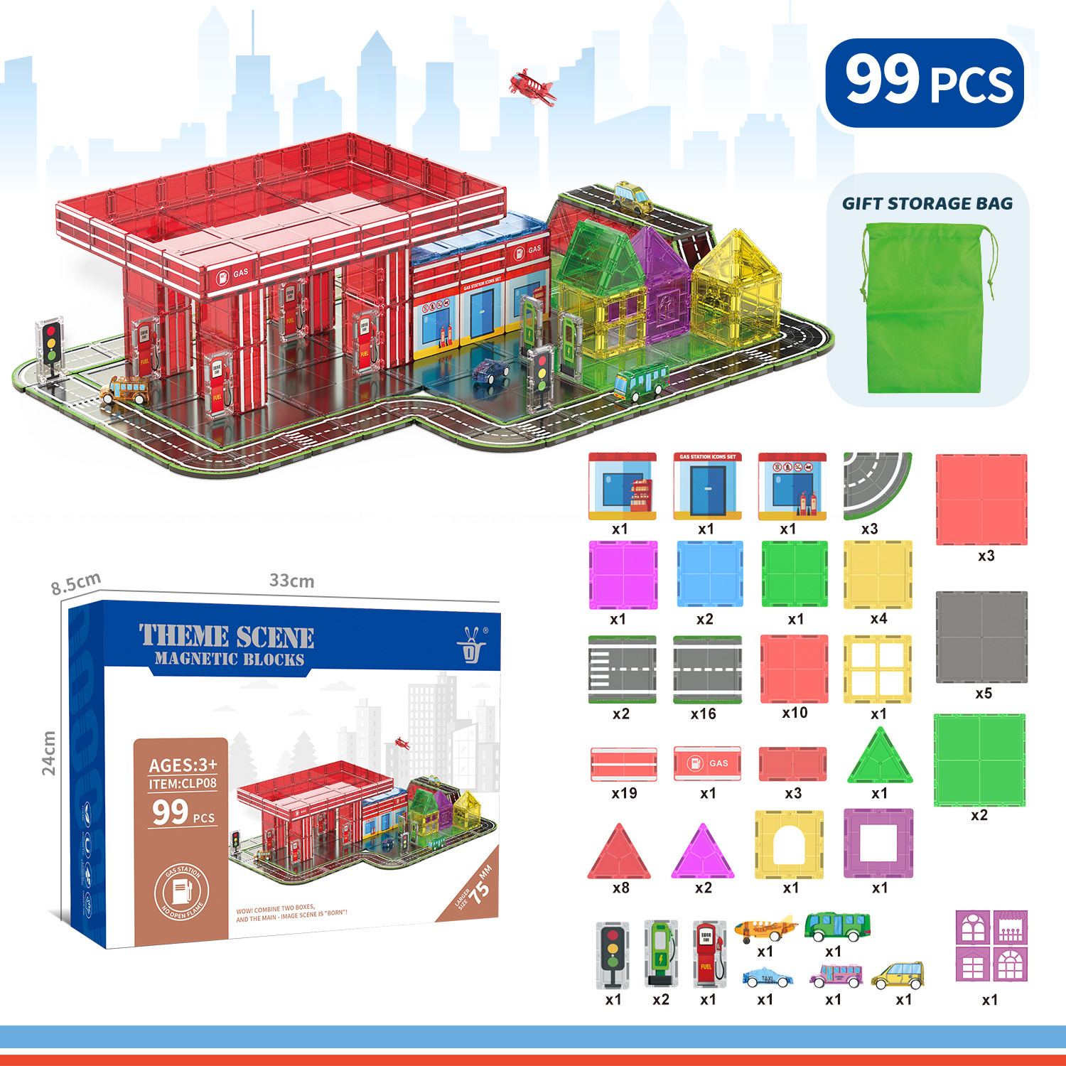 7.5CM磁力片加油站-99PCS ¥15500 9999个可售