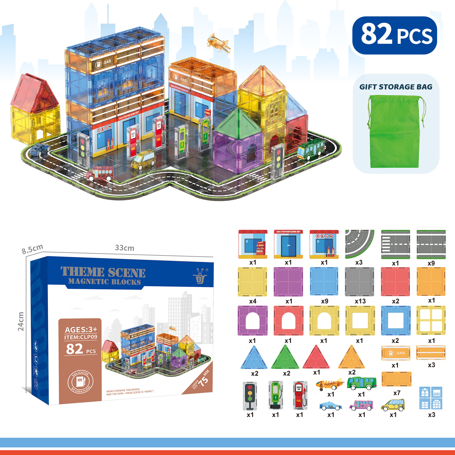 7.5CM磁力片加油站-82PCS ¥10500 9998个可售