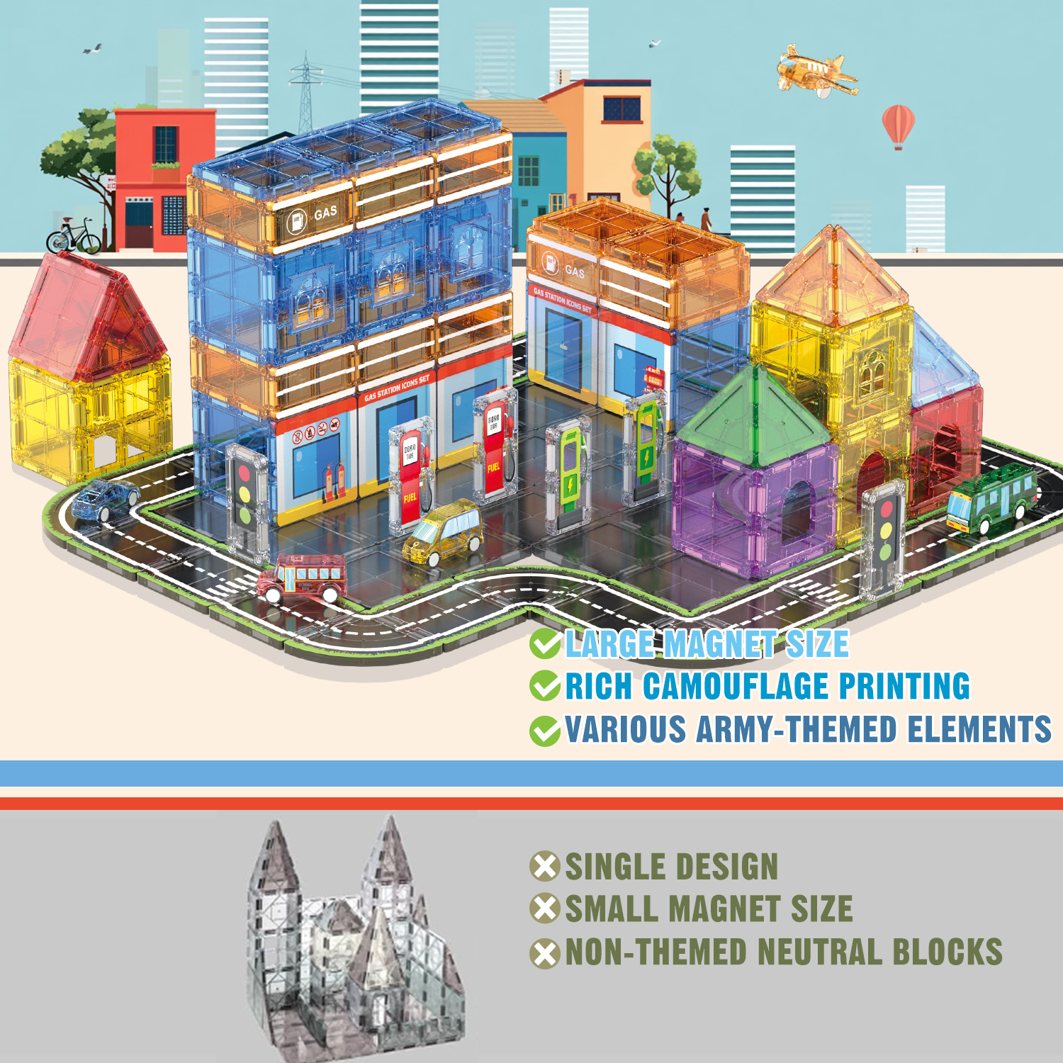 7.5CM磁力片加油站-63PCS ¥8438 9996个可售