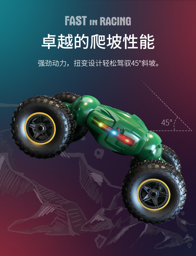 严选儿童大号2.4G扭变遥控车充电攀爬越野特技车电动无线四驱玩具