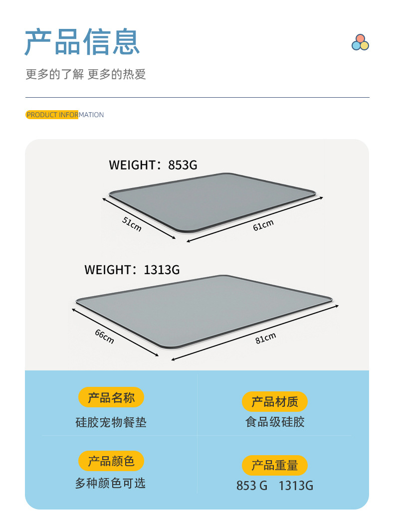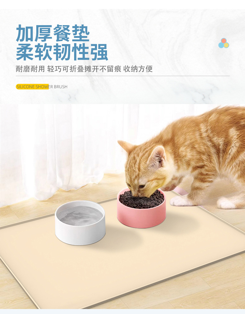 材质: 硅胶 品牌: 其他 成套自动喂食: 否 产地: 义乌 是否进口: 否 货号: 宠物餐垫 是否专利货源: 否 规格: 51cm*61cm 颜色: 灰色,米色 有可授权的自有品牌: 否 是否跨境出口专供货源: 是 是否IP授权: 否 重量: 0.172 kg/个