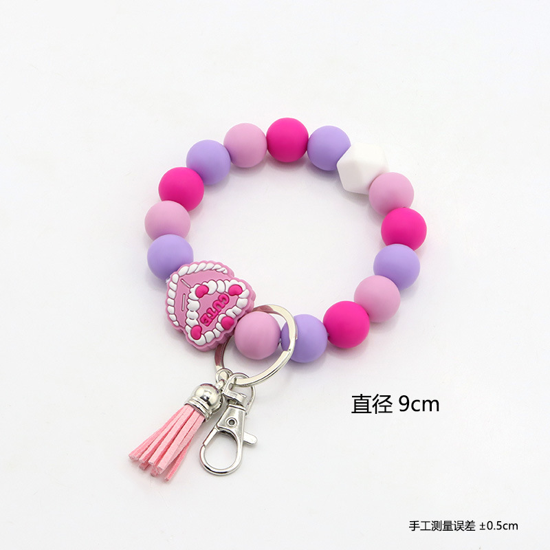 亚马逊爆款硅胶手环男女通用流苏珠子串手链手镯钥匙扣挂件可定制