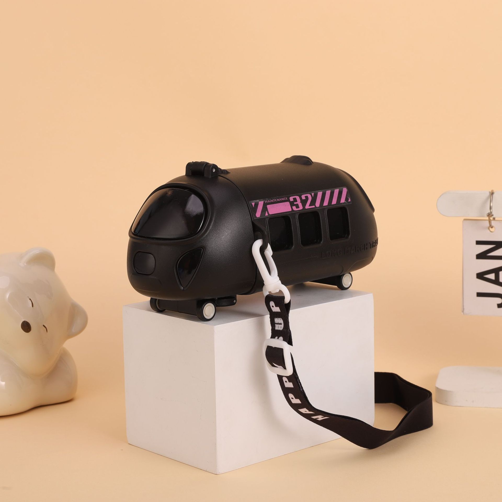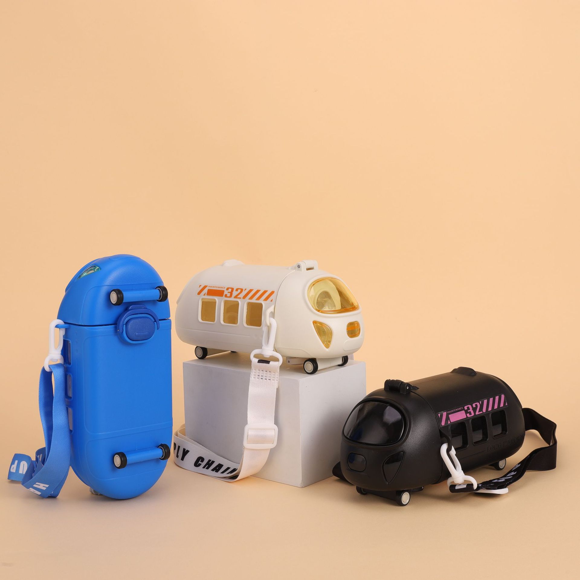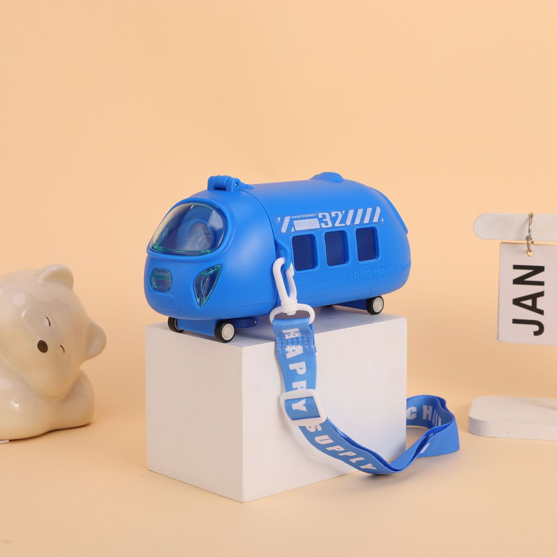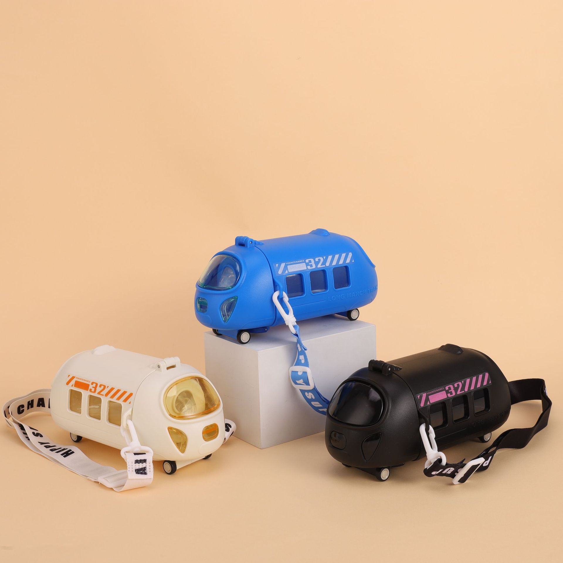 新款高铁模型儿童运动水杯便携式儿童宝宝巴士便携式带背带塑料杯