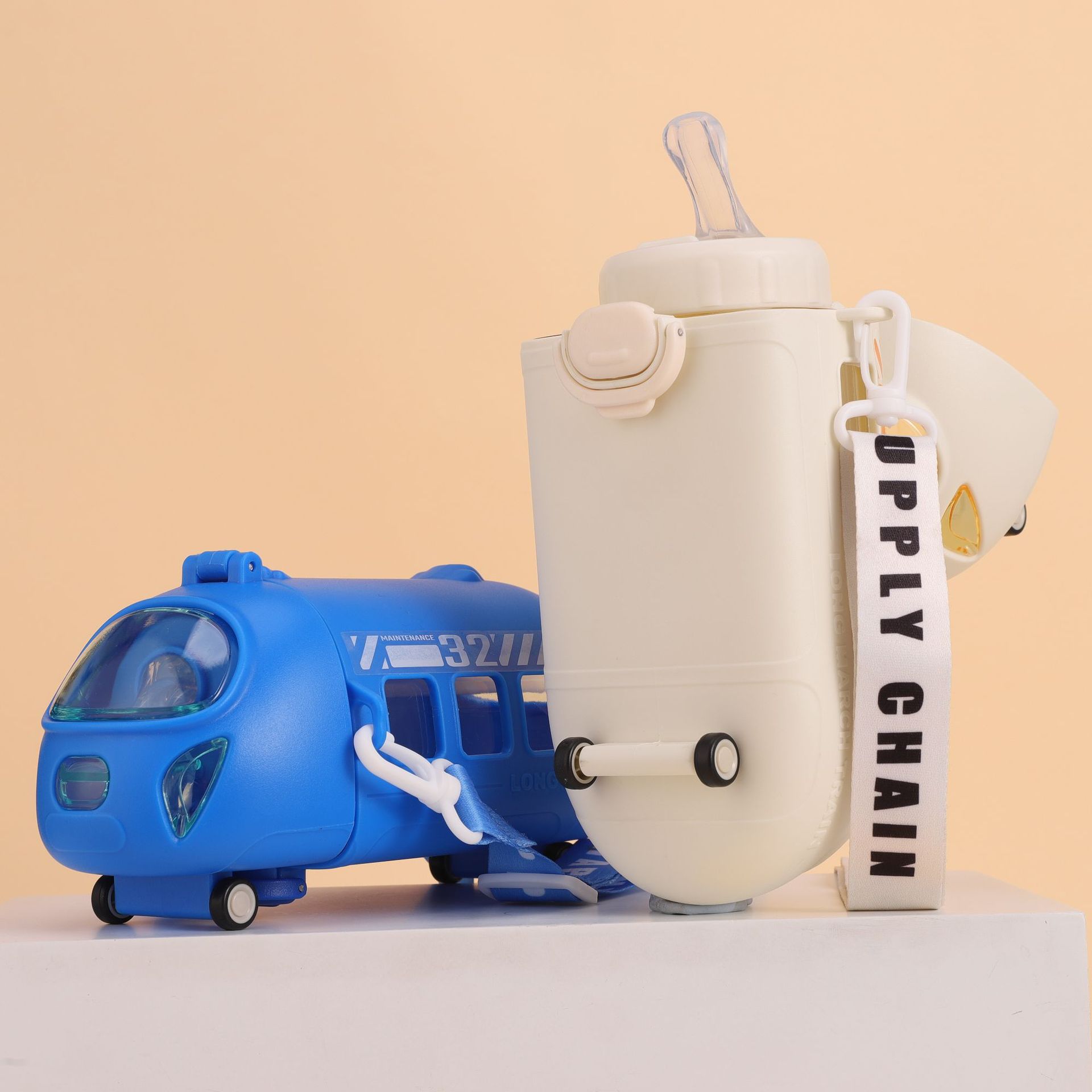 新款高铁模型儿童运动水杯便携式儿童宝宝巴士便携式带背带塑料杯 投诉
