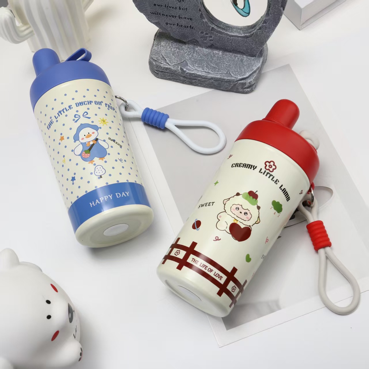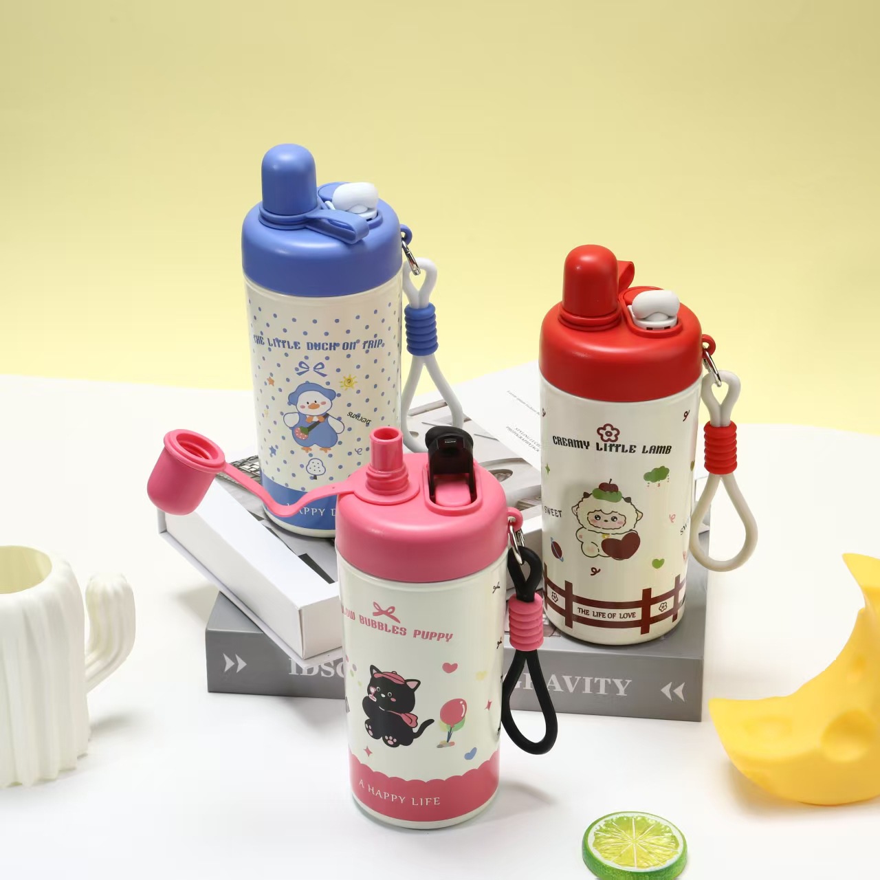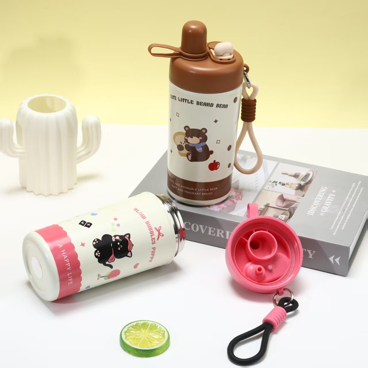 新款卡通儿童冰霸杯316不锈钢双饮保温杯高颜值便携随行吸管水杯